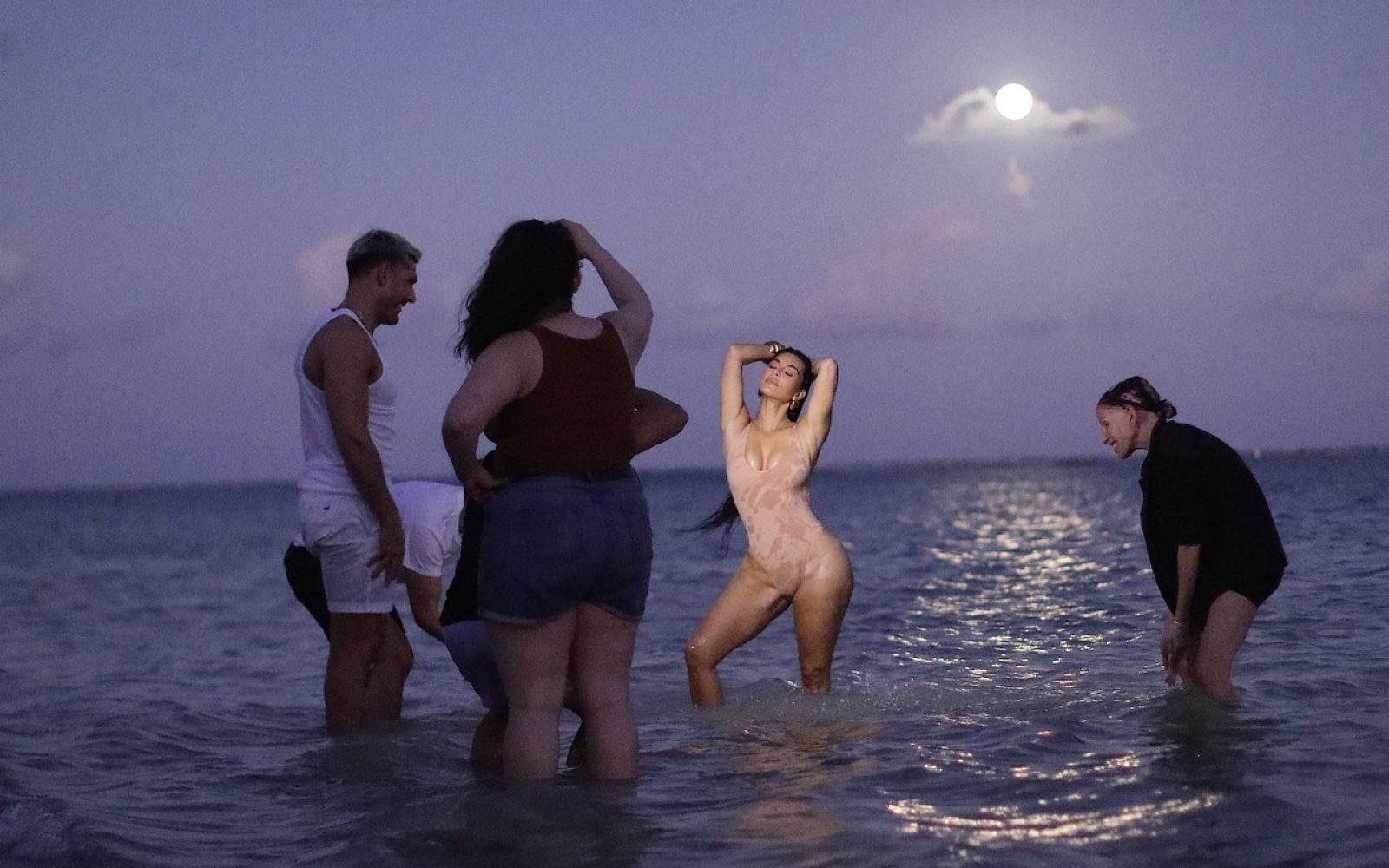 Medtem ko Kanye West s svojo novo izbranko Julio Fox pozira na tednu mode v Parizu, Kim Kardashian uživa na Karibih, kjer snema novo kampanjo spodnjega perila za svojo znamko Skims. Z njo je celotna ekipa, od fotografov in snemalcev pa do vizažistov in frizerjev. Ti skrbijo, da je med fotografiranjem vse na svojem mestu in da zvezdnica zažari v vsej svoji (po)polnosti.