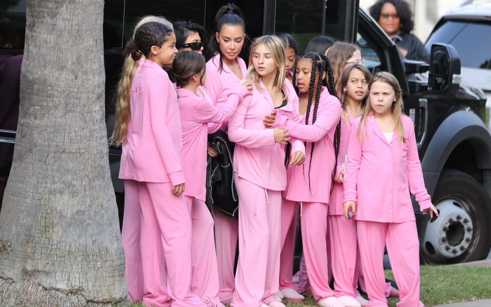 Seveda so se priložnosti primerno tudi oblekle – vse deklice so nosile rožnate oprave, Khloe se je odločila za tesno oprijetega pajaca, Kim pa je obula pink škornje.