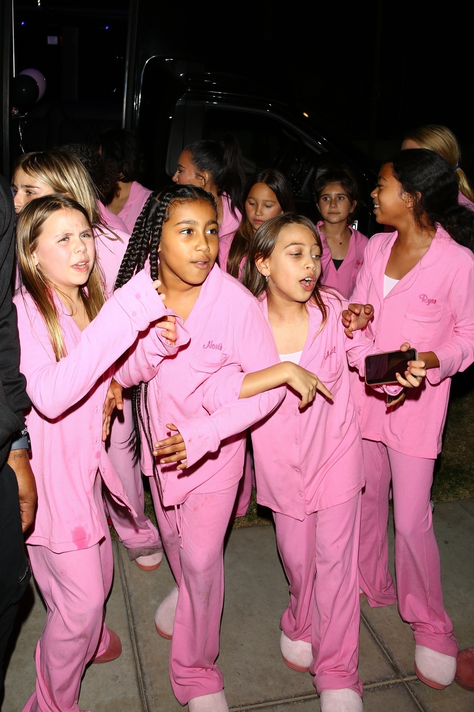 Vsa dekleta so bila oblečena v enake pižame, na katerih so bila našita njihova imena ter imele obute plišaste copate. Seveda je vsaka v roki držala tudi svoj telefon, s katerim so dokumentirale to zabavno Barbie pustolovščino.