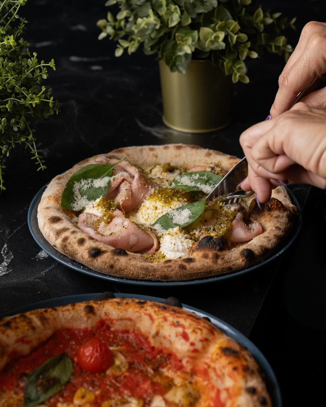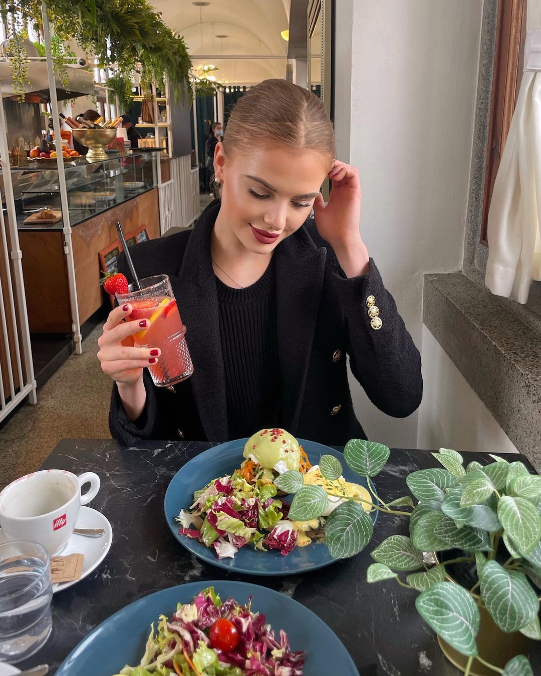 Jedi dopolnjuje kar nekaj odličnih pijač, med katerimi sva se s sodelavko izbrali Rosato Spritz in Violet Spritz. Medtem ko prvega že dodobro poznamo – Rosato je italijanski aperitiv z notami hibiskusa in pomarančnih cvetov, ki se v koktajlu združi s penečim vinom – pa smo drugega spoznali prvič. Violet spritz je precej bolj sladek, a še vedno osvežujoč koktajl, ki ga sestavljajo sirup vijolice, tonik, peneče vino in borovnice za okras.