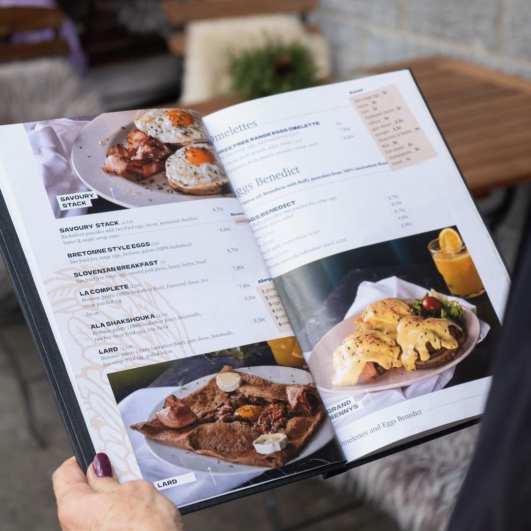 V bistroju, ki ponuja avtentične okuse Bretanje, se lahko okrepčate za zajtrk, si privoščite francosko lahkotno malico, brunch ali kosilo. Na meniju so poleg galett, solat in sladic še francoski rogljički, več vrst gurmanskih zajtrkov z jajčkami, granola z jogurtom in francoske slane pite imenovane quiche.