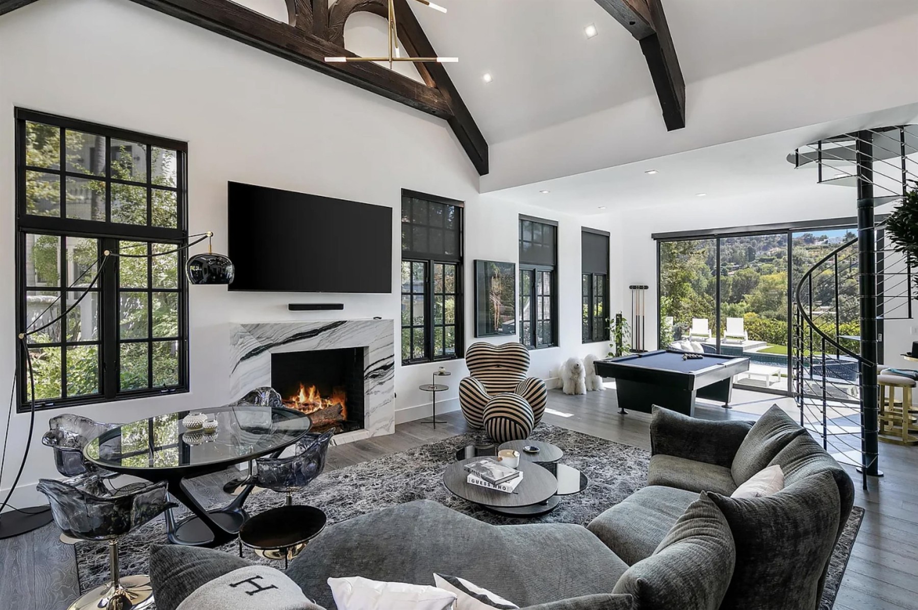 Vila, ki se nahaja v diskretni skupnosti z varovanimi vrati, obsega več kot 6000 kvadratnih metrov površine na pol hektarja velikem zemljišču. Pred njem je v vili bivala Perla Hudson, nekdanja žena legendarnega kitarista skupine Guns N’ Roses Slasha, ki je hišo obsežno prenovila s samimi dragocenimi kosi.