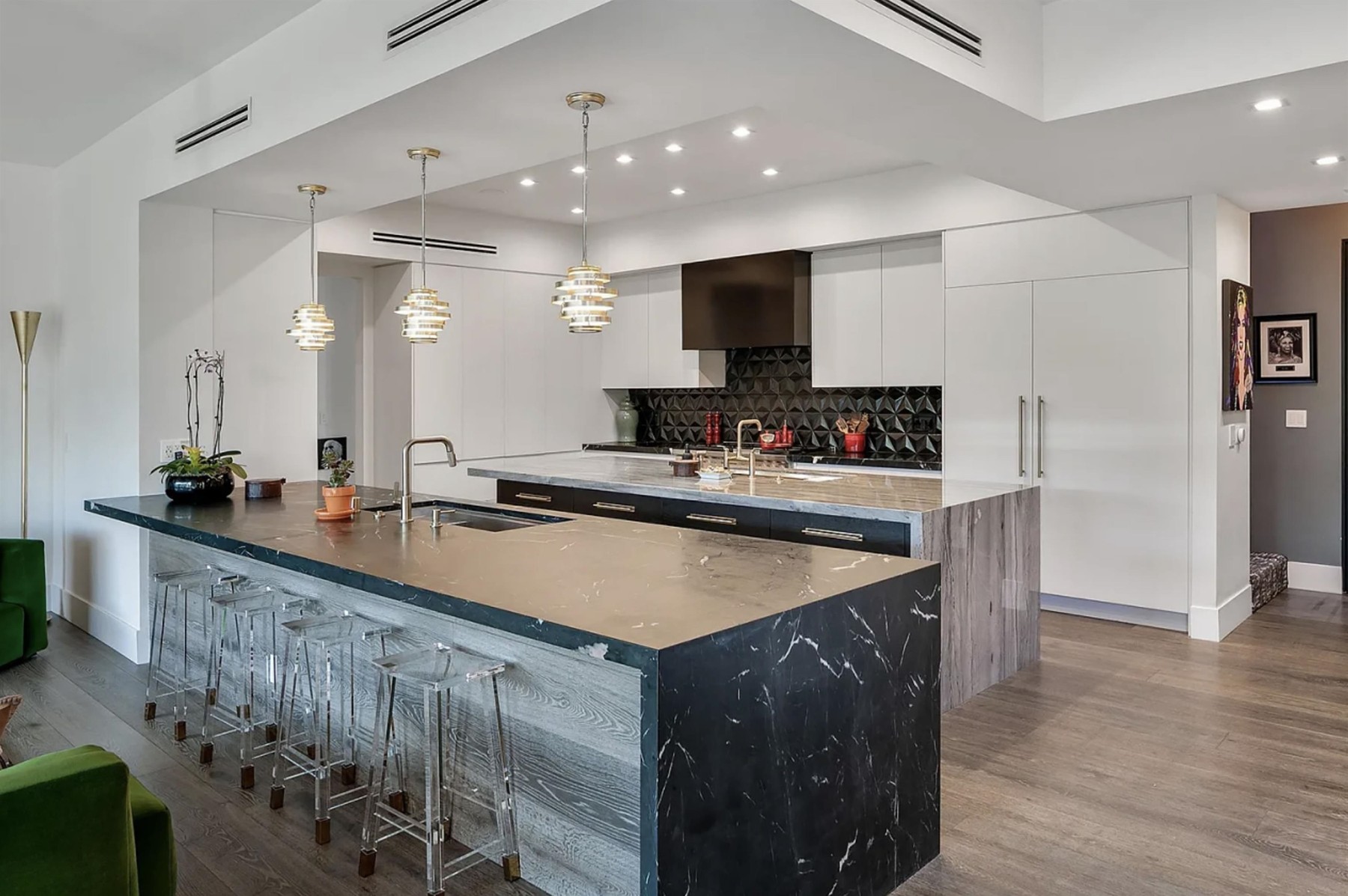 Popolnoma novo kuhinjo zaznamujeta kar dva ogromna pulta, pri čemer je eden namenjen druženju in obedovanju, drugi pa služi za pripravo hrane. Mladi raper bo lahko užival v glavni dnevni sobi, ki je nekoliko odmaknjena in ima velik zasebni balkon ter dekadentni kopalnici s samostoječo kadjo.