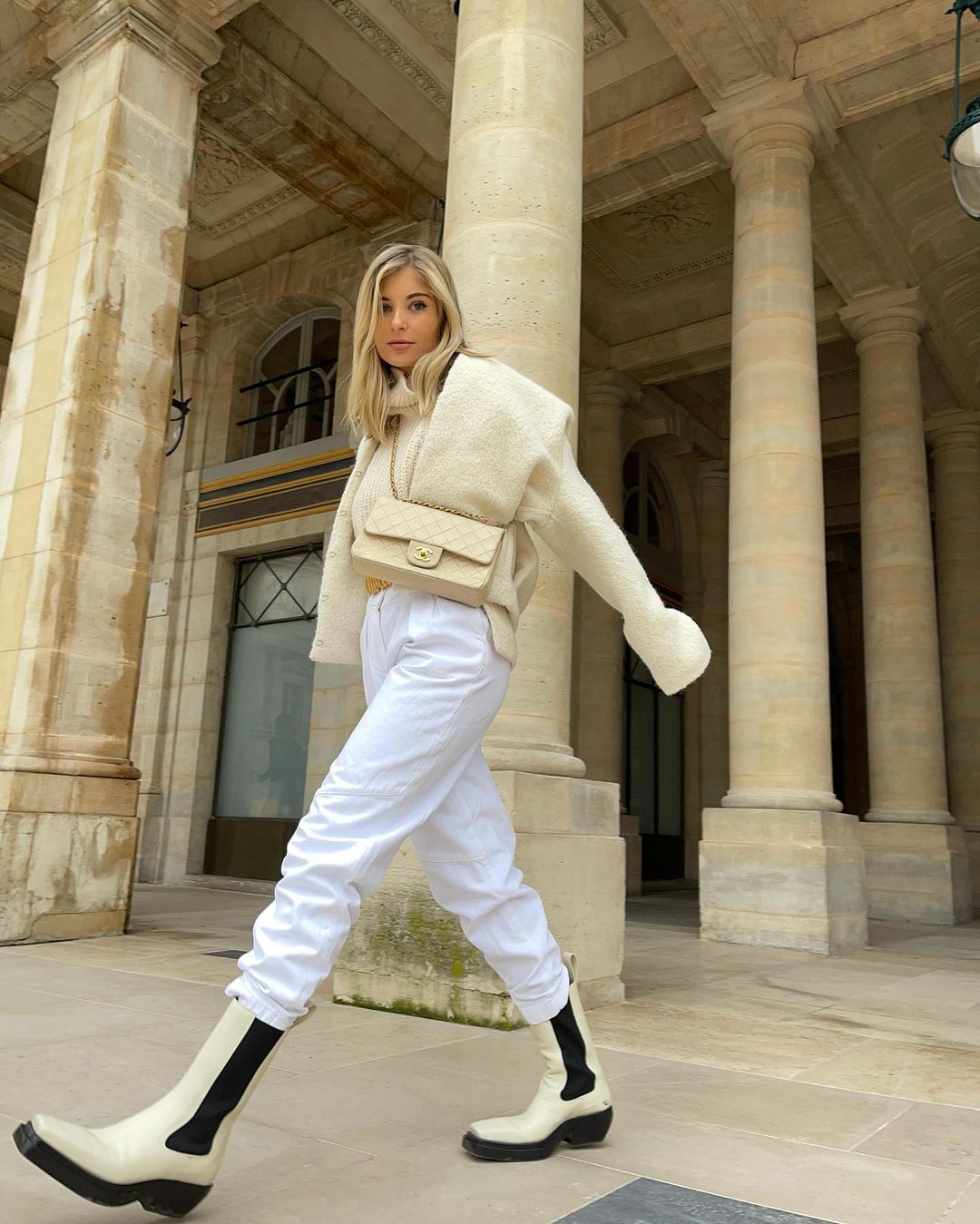Tokrat sem navdih poiskala pri vplivnici Xenii Adonts, ki je mojstrica kombiniranja belih hlač na različne načine in za različne priložnosti.