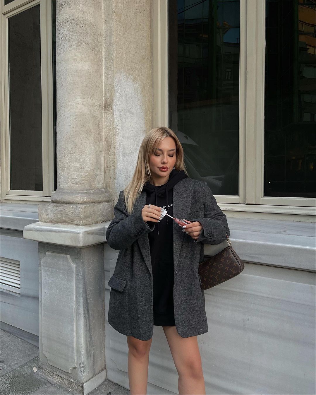 Navdih bom iskala pri znanih modnih vplivnicah in zvezdnicah z dodelanim modnim slogom in ta teden nam bo za zgled turška vplivnica Büşra Dede, ki je znana po svojem minimalističnem stilu, v katerem prevladujejo nevtralne barvne kombinacije. V oči mi je padel njen siv oversized suknjič, ki ga odlično kombinira za različne priložnosti. Zakaj ne bi postal osrednji kos naše tedenske garderobe?