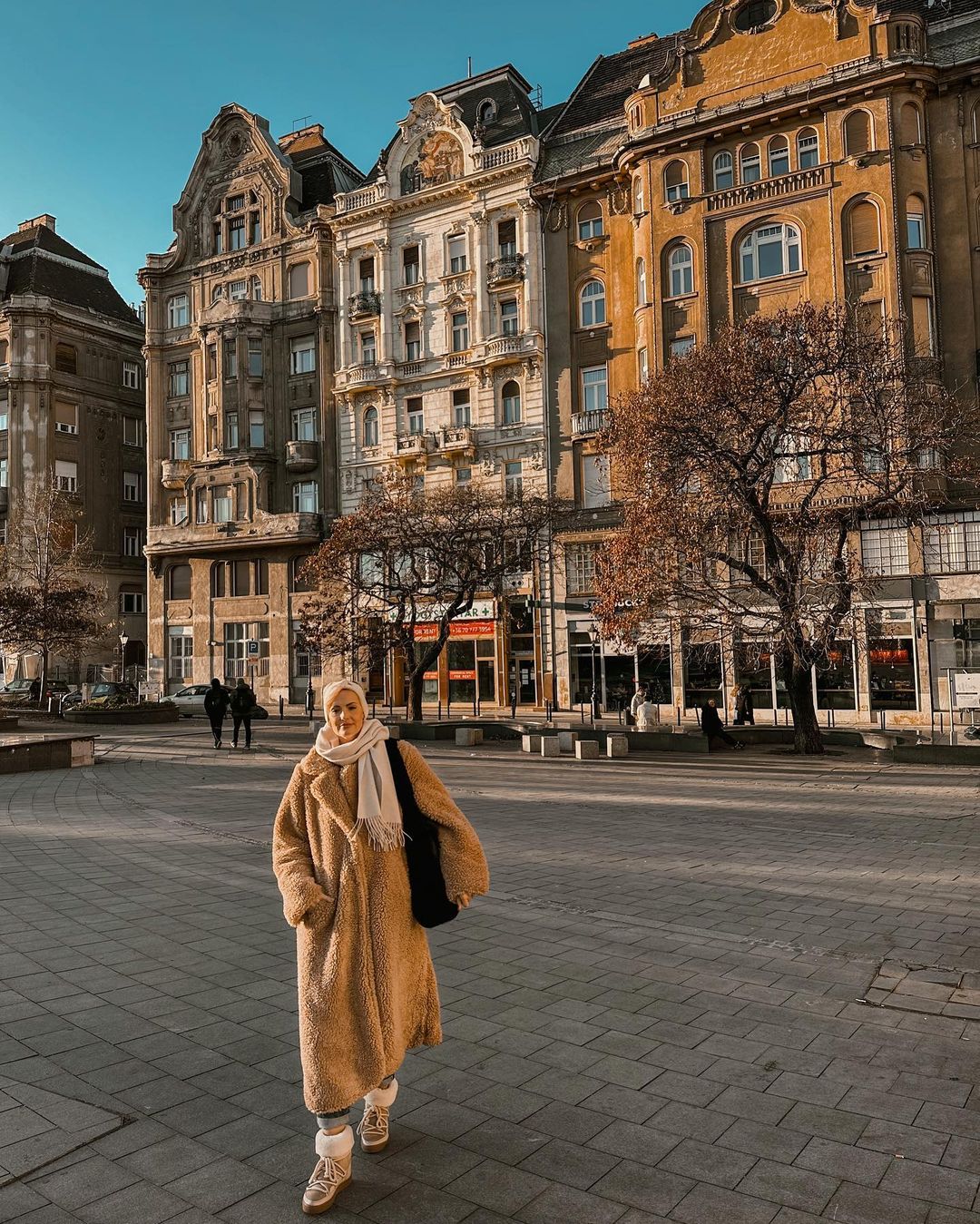 Skibucke so Tjašina obvezna oprema tudi med raziskovanjem tujih krajev. Takrat jih najraje skombinira z dolgim in izjemno toplim “teddy” plaščem ter šalom in kapo v beli barvi. Toplota zagotovljena!