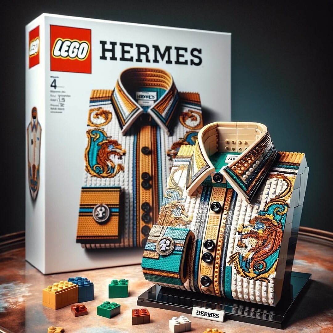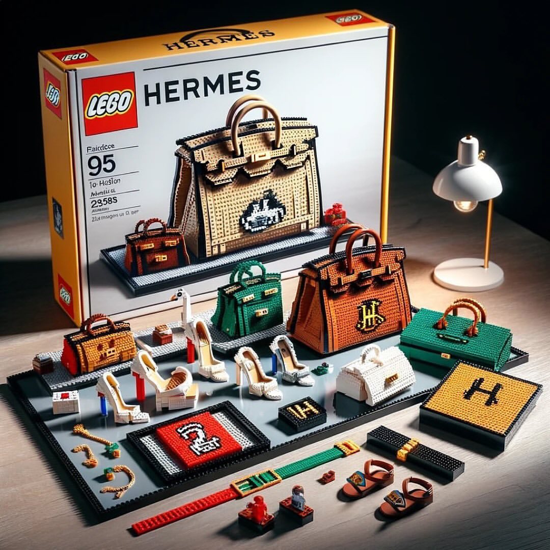 Med idejami za sodelovanje prestižnih modnih znamk in znamke najpopularnejših kock na svetu se je znašla ikonična Birkin torbica, pisan pas z značilnim logotipom v zlati barvi pa tudi torbica Kelly in zložena srajca s pisanimi motivi.