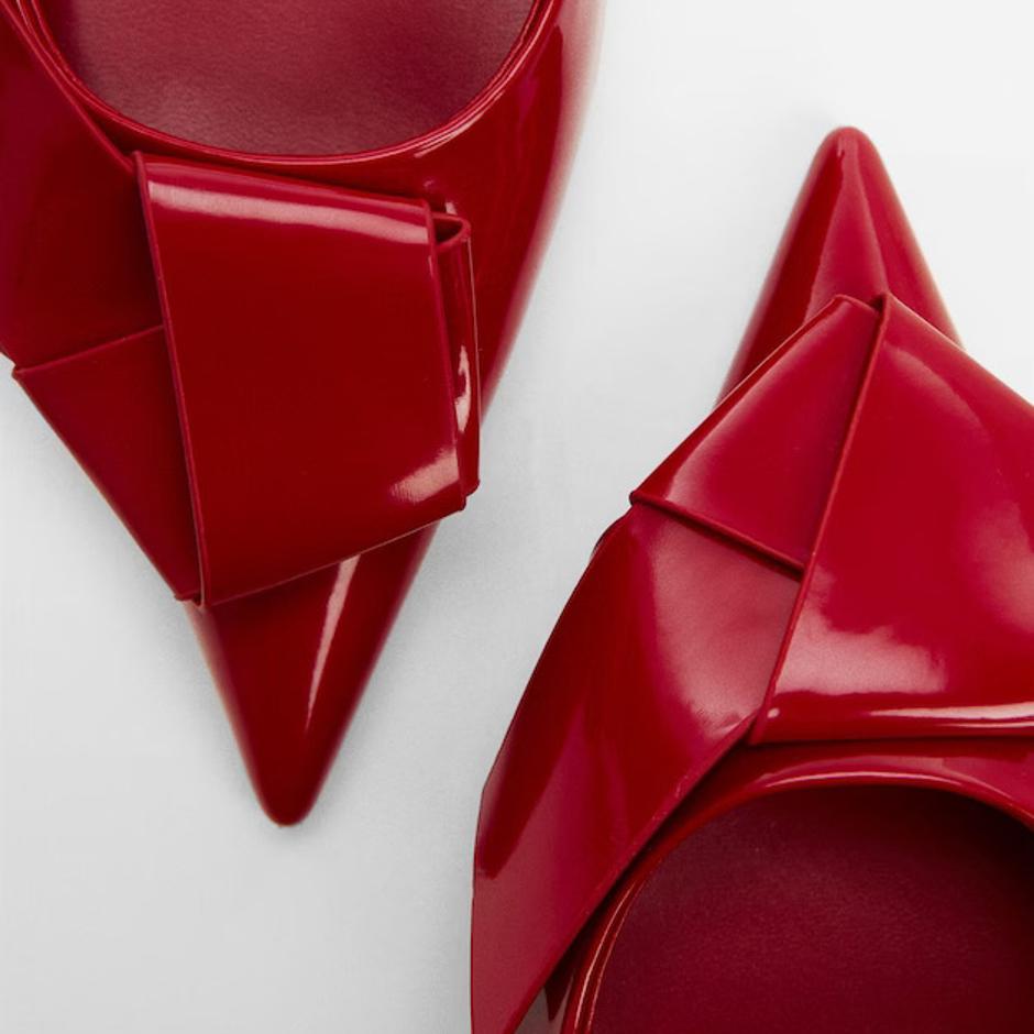 Med najnovejšimi kosi obeh znamk so namreč rdeči ‘slingback’ sandali z le nekaj centimetrov visoko peto in vozlom s pentljo, ki neustavljivo spominjajo na model salonarjev, ki jih je Prada predstavila v sklopu jesensko-zimske kolekcije za preteklo leto.