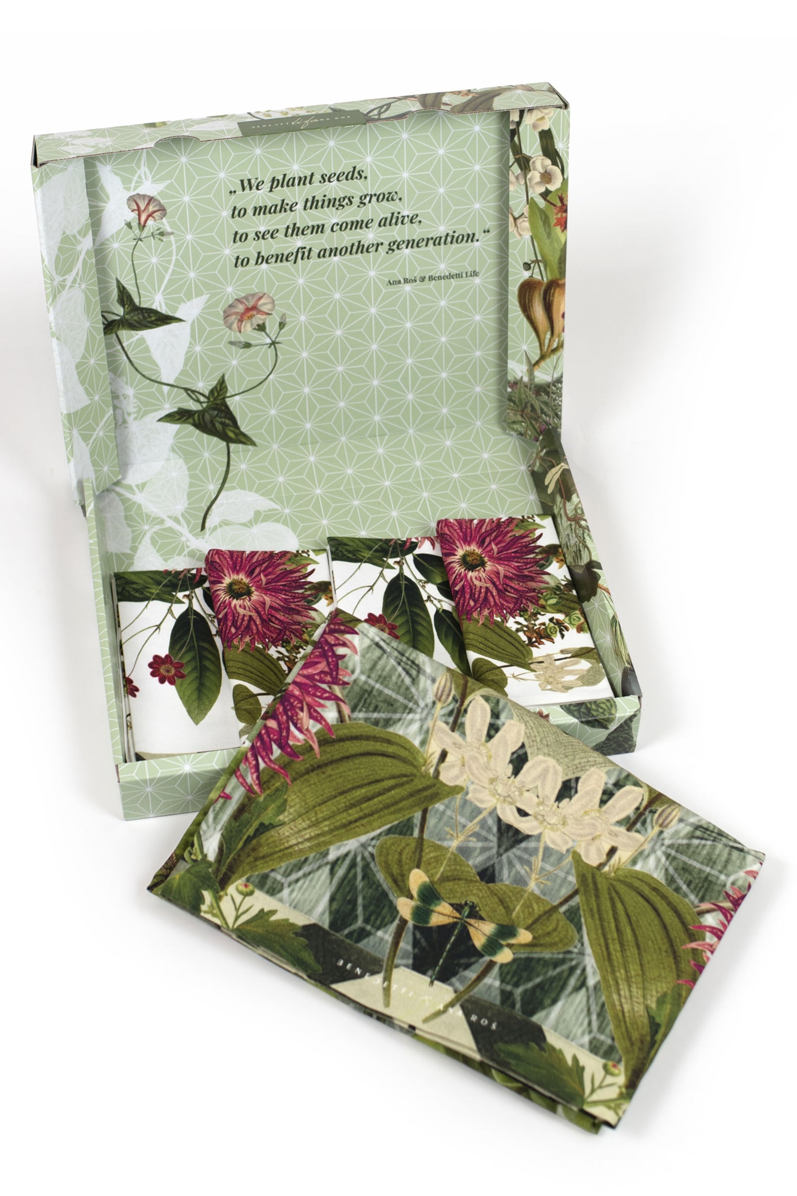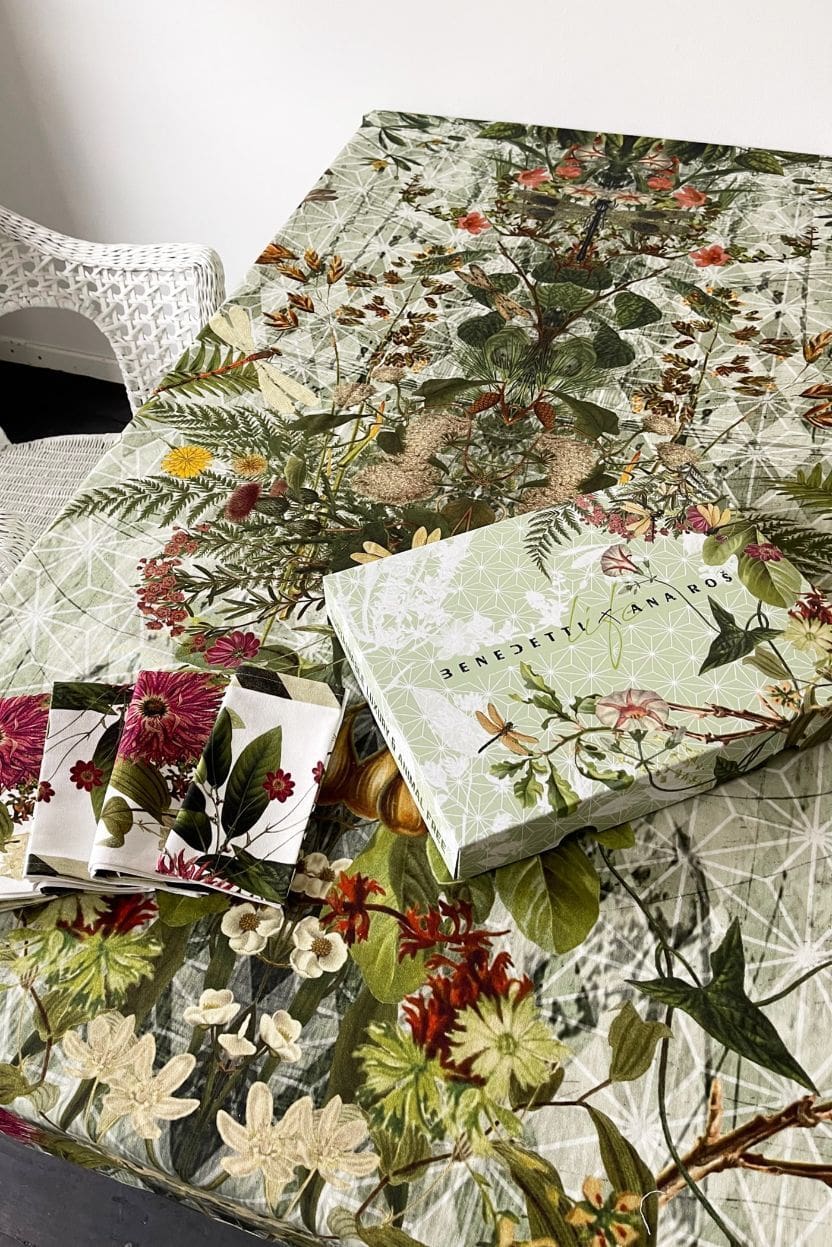 Namizni prti in prtički s podpisom Benedetti Life x Ana Ros so po njunih besedah narejeni “za trajnosten dom, ki prispeva k boljši prihodnosti.” Na njih se bohotijo cvetlični potiski na vodni osnovi, dizajnu, ki je “vzet naravnost z Aninega vrta, da vašim obrokom prinese stil,” in s katerim boste na svojo jedilno mizo pripeljali edinstveno modno brv.