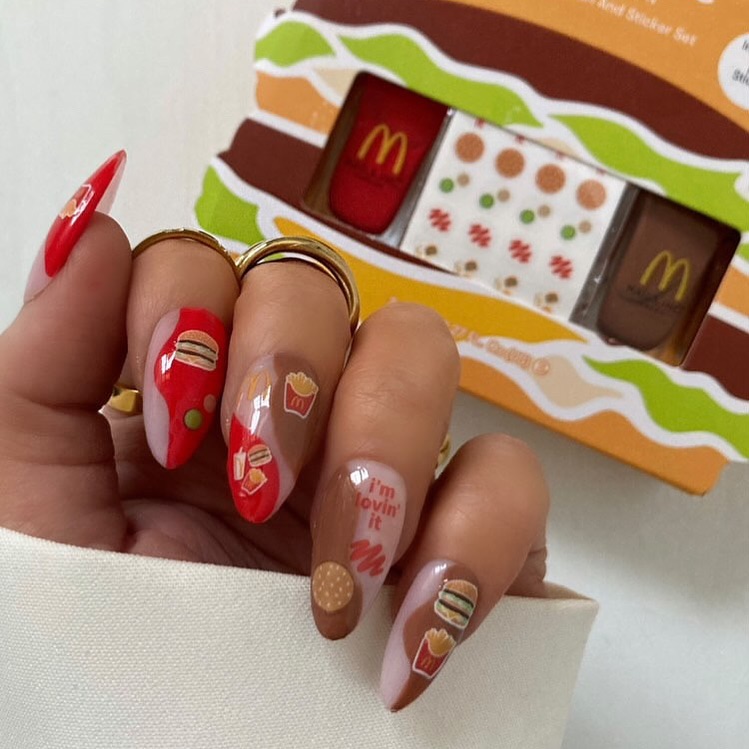 Če obožujete McDonald`s, je nova lepotna kolekcija, ki jo je pred kratkim predstavila ameriška prehranska veriga, povsem po vašem okusu. Linija vključuje tri različne lake za nohte in nalepk za nohte s tematiko priljubljenih jedi z njihovega jedilnika.