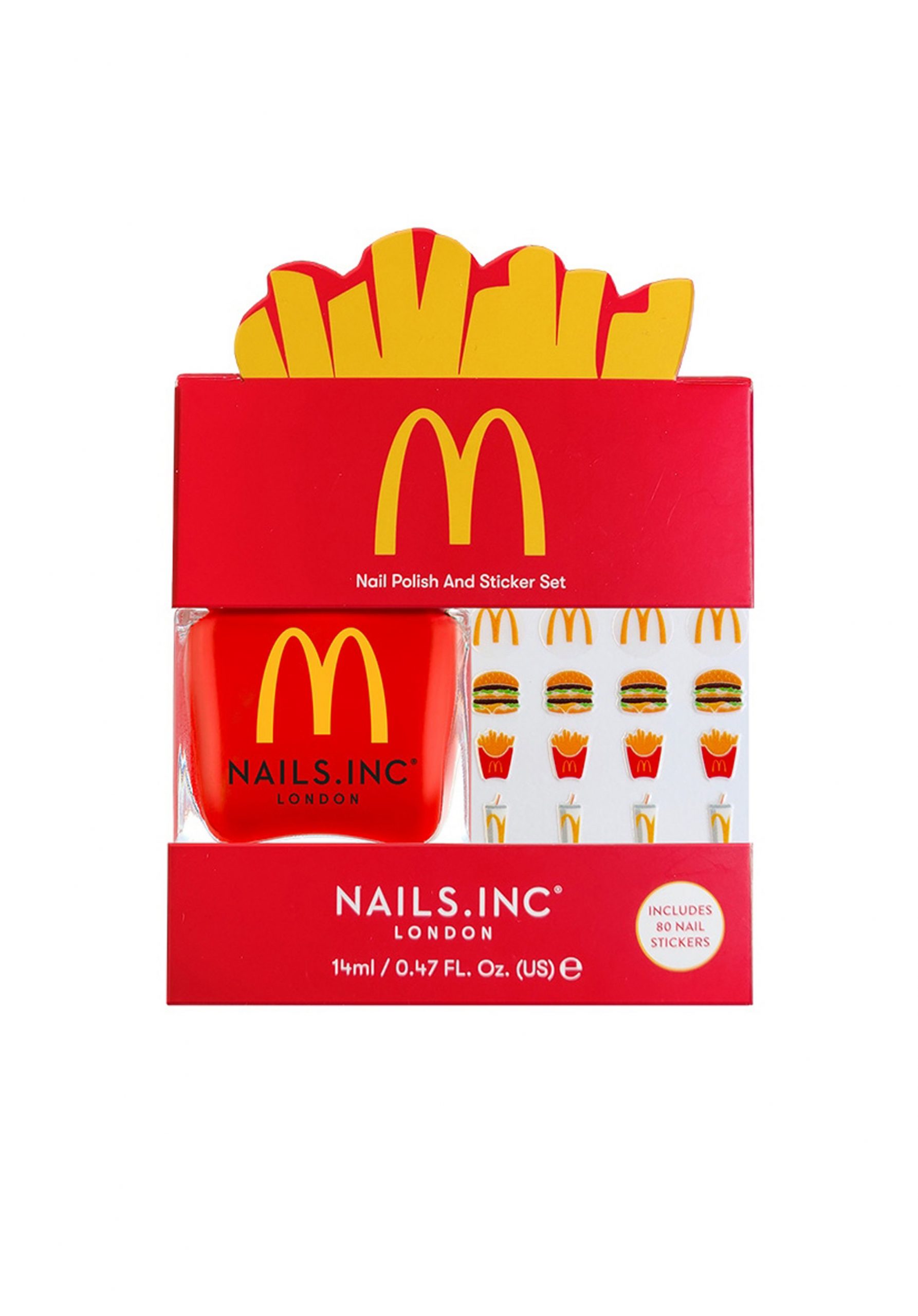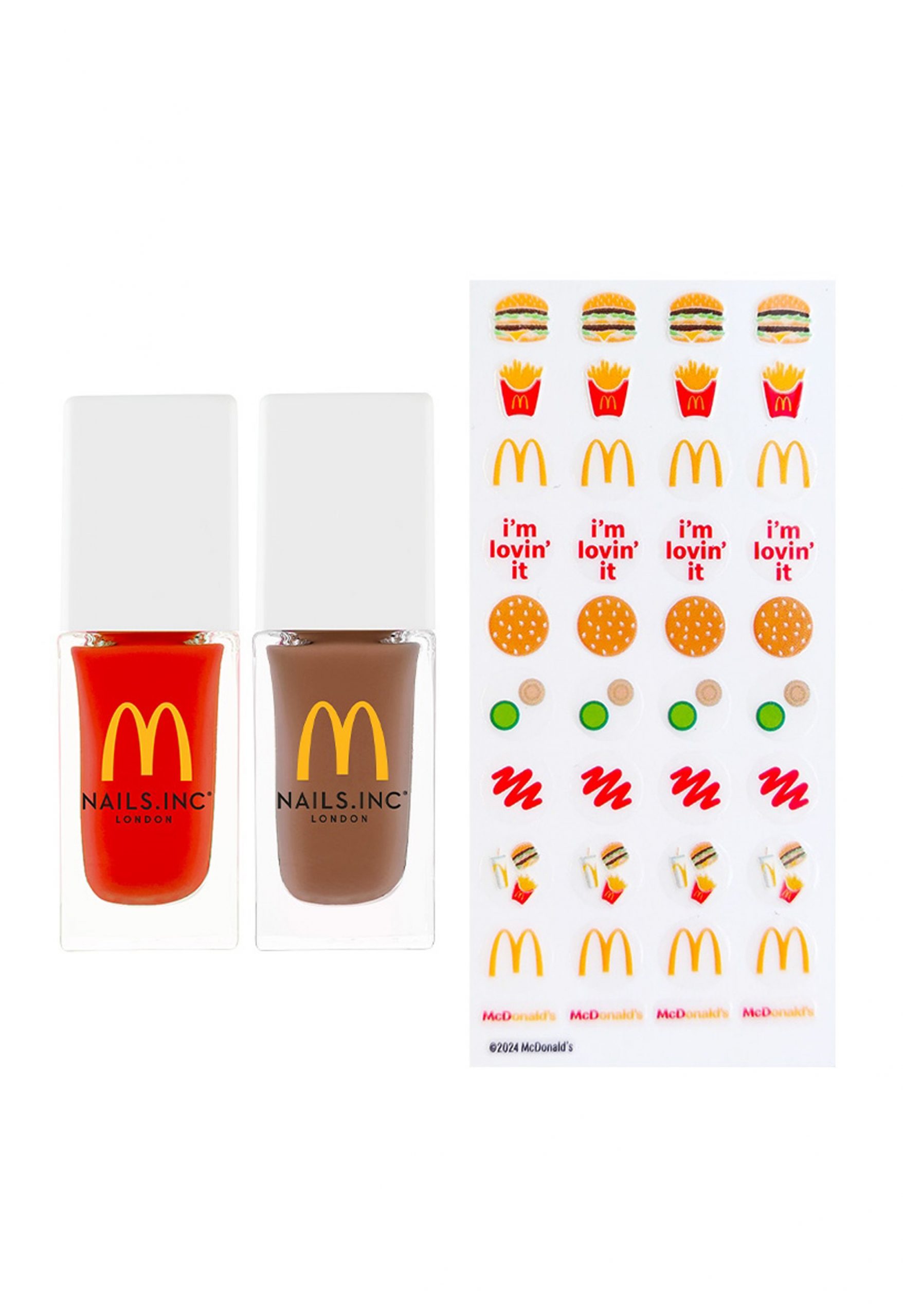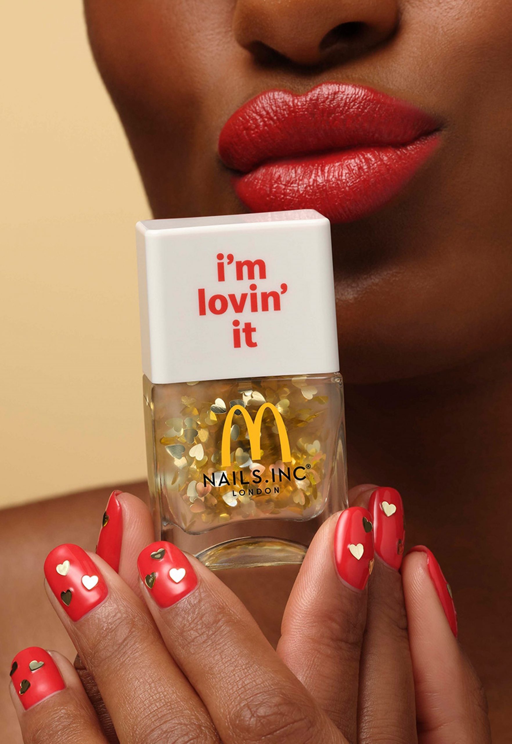 Linija izdelkov za nohte je nastala v sodelovanju z britansko blagovno znamko Nails Inc. Edinstvena kolekcija je bila ustvarjena za vse oboževalce slovitih zlatih obokov, da svojo predanost znamki ovekovečijo tudi na konicah svojih prstov. Sodelovanje vključuje vrsto izdelkov, ki jih navdihujejo ikonične blagovne znamke in jedilniki McDonald’s.