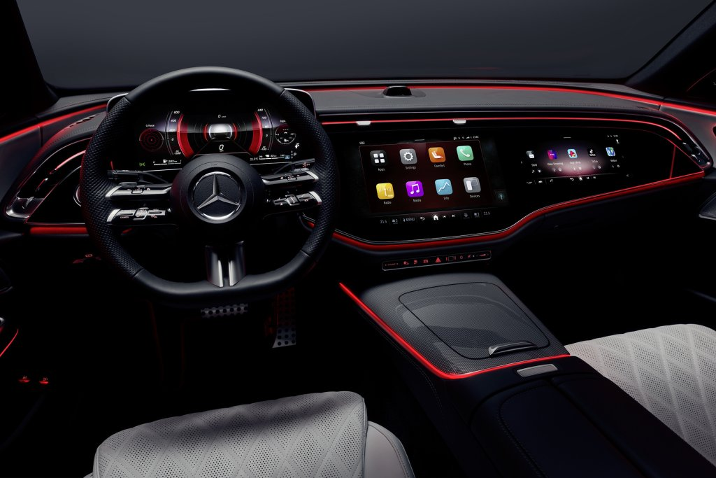 Novi E-class model bo imel prav tako stekleno armaturno ploščo, ki bo vsebovala tudi zaslon na dotik za sovoznika, pri Mercedesu pa pravijo, da bo armaturna plošča oblikovana z namenom, da zmanjša potencialne distrakcije za voznika. Kamera bo tako na primer zaznala, kako pogosto in za koliko časa voznik pogleda proti zaslonu in bo zaslon tudi zatemnila, če bo to potrebno. Na sovoznikovem sedežu pa bo mogoče prek zaslona gledati videe, predvajati glasbo in brskati po spletu.