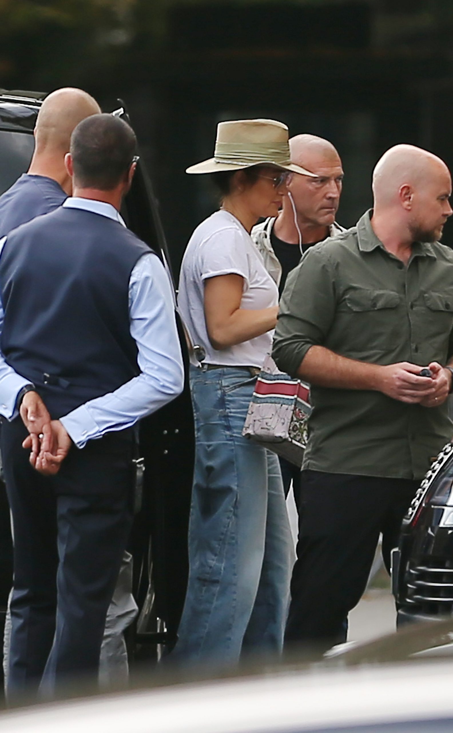Nekaj ur pred tem sta bila fotografirana v veliko bolj ležerni opravi. Pevka je imela oblečeno preprosto belo majico in kavbojke, na glavo pa si je poveznila fedoro. Affleck je oblekel temno modre hlače in svetlo srajco.
