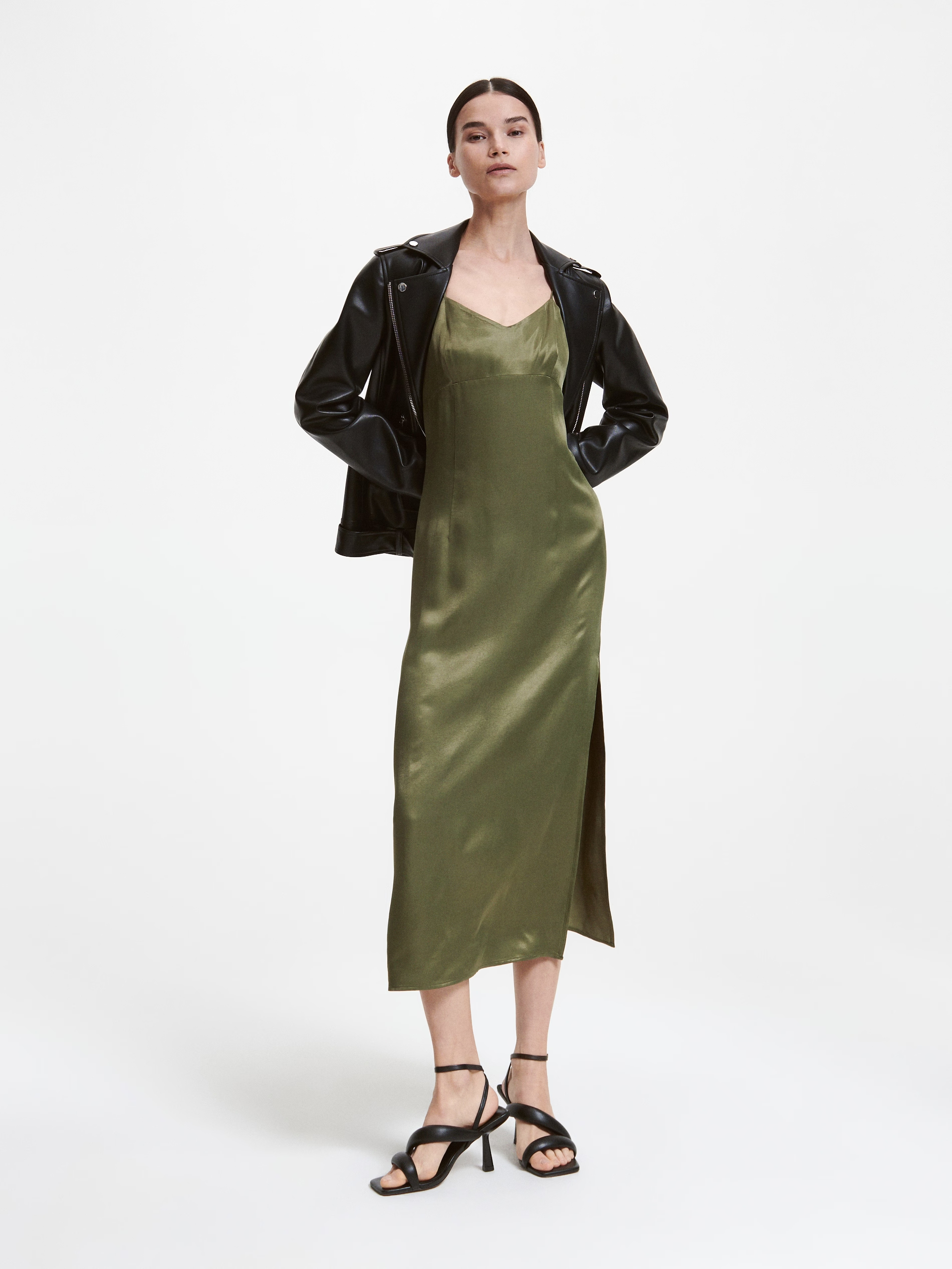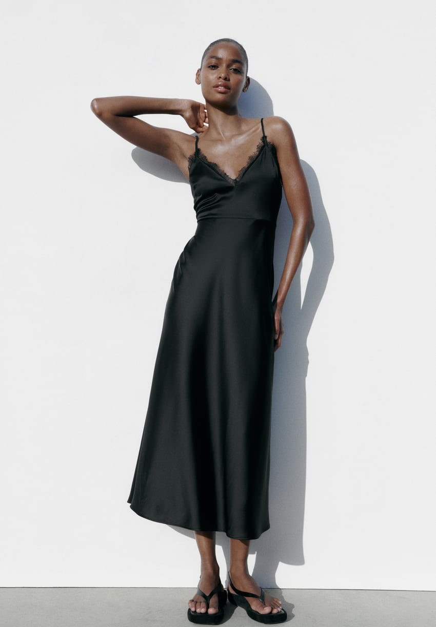 Če pa ste ljubiteljice minimalizma, potem vam predlagamo slip obleko v nevtralnem odtenku ali črno, ki je klasika, s katero ne morete zgrešiti. Karkoli že boste izbrale, prepričani smo, da boste dobro kombinirale, v nadaljevanju pa iz aktualne ponudbe izbiramo 10 modelov slip oblek.