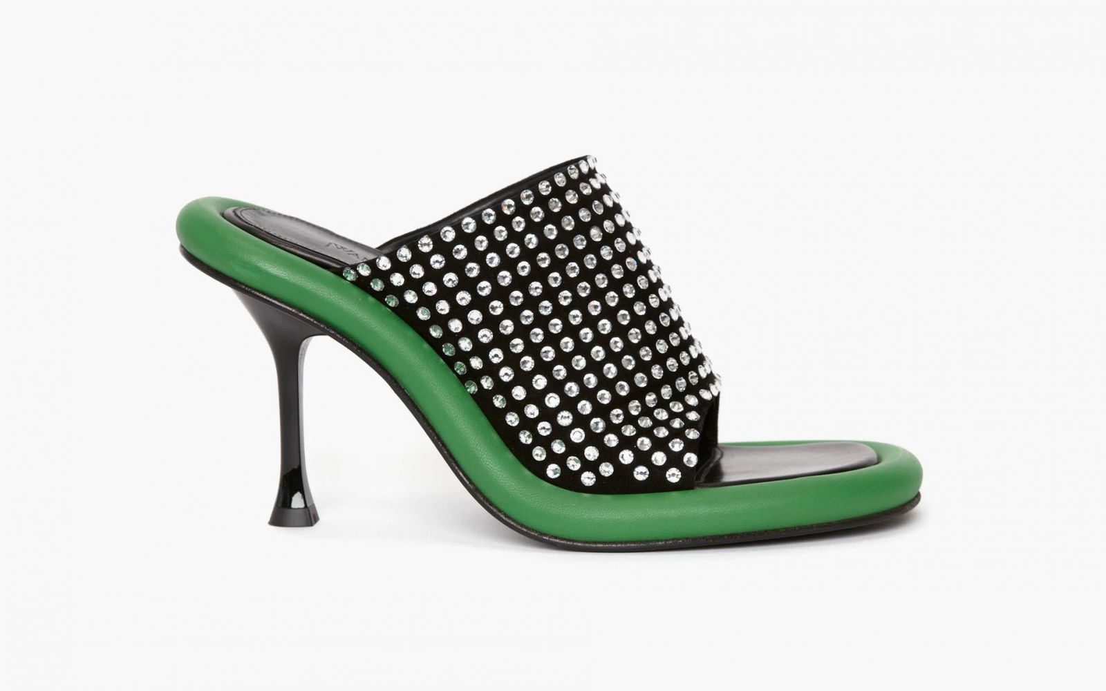 No, če so vam pri srcu vseeno bolj visoke pete, ne skrbite. Pri JW Andersonu so poskrbeli tudi za vas. Poleg coklov je namreč na voljo tudi različica kristalnih sandalov s peto. Ti so na voljo v črni in zeleni barvi, visoka pa ni samo njihova peta, ampak tudi cena.