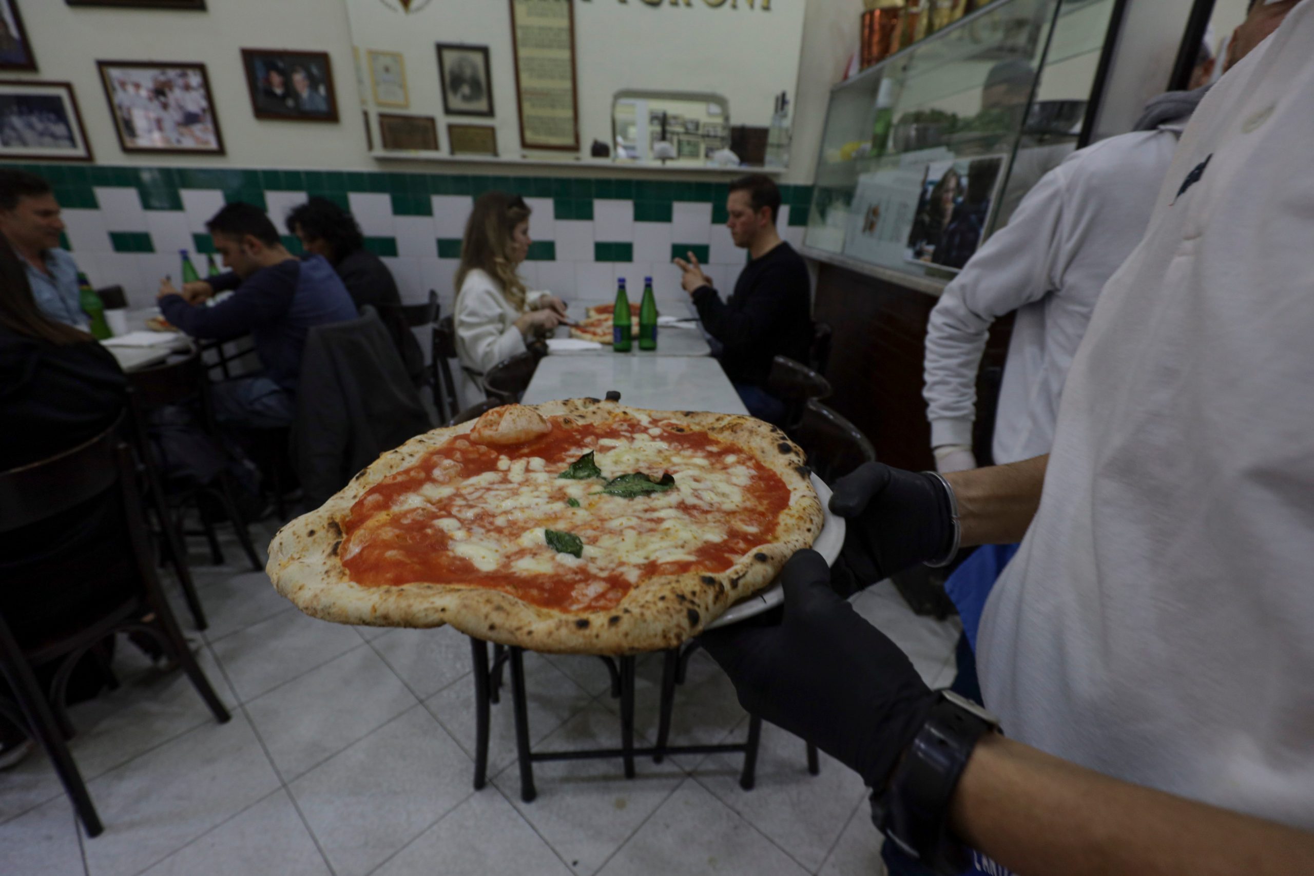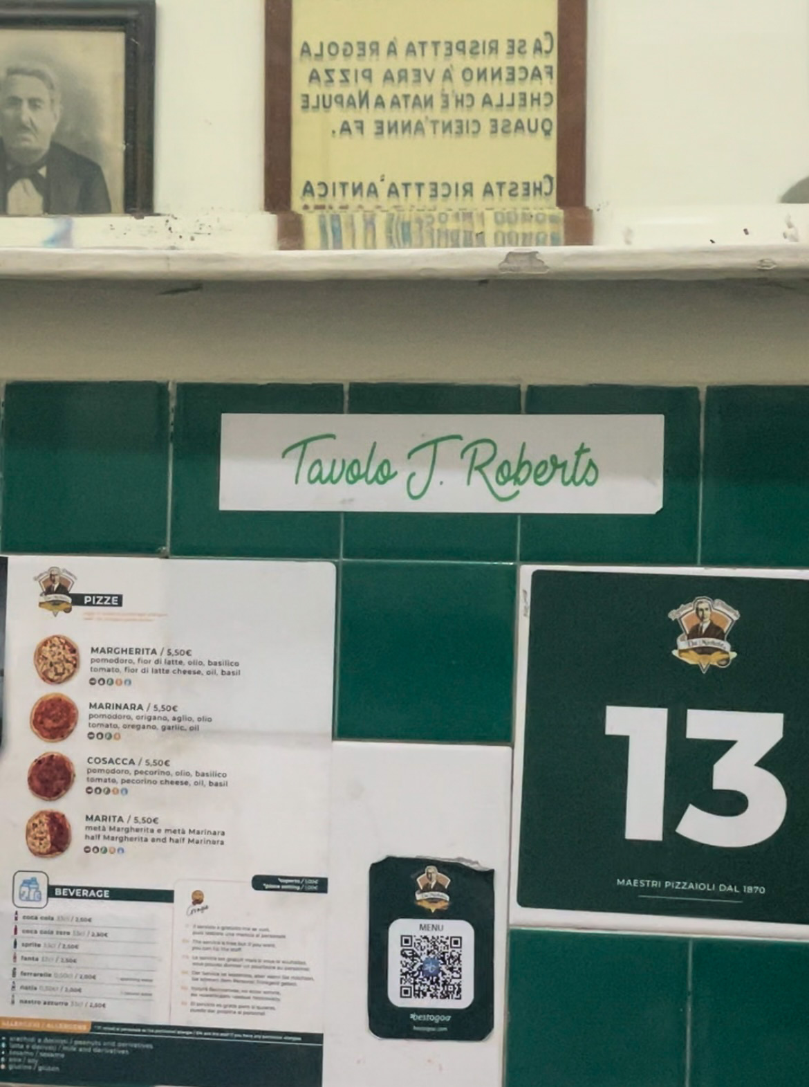 Prijateljica iz Slovenije, ki zadnjih nekaj let živi v Italiji, naju je pripeljala do picerije, a čim sva prišli do ulice, kjer se nahaja, sem ugotovila, da nisem edina, ki si ji zastavila takšen cilj. Pred picerijo se je namreč vila dolga kolona ljudi, ki so čakali na mizo, veliko turistov pa je sedelo kar na pločniku v bližini picerije in jedlo pico iz kartona. Toda ta možnost ni prišla v poštev, saj nisem želela le poskusiti pice, temveč tudi začutiti atmosfero picerije z več kot 150-letno tradicijo.