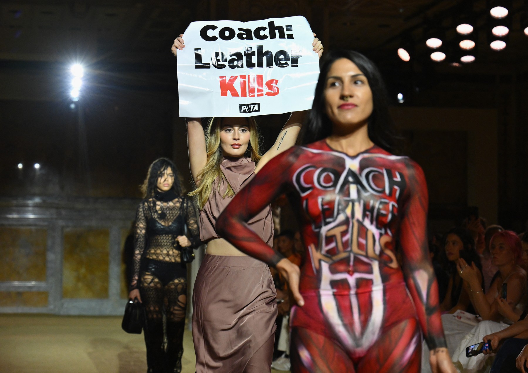 PETA je med drugim prvič razkrila industrijo zakolov nojev in svetu pokazala, da mlade noje zadržujejo v neplodnih krmiščih, dokler jih ne prepeljejo v klavnice. Tam leto dni starim omamljenim nojem prerežejo grla in izpulijo perje, da ustvarijo kožo z neravno teksturo ali “gosjo polt”, ki se uporablja za izdelavo Birkin torbic.