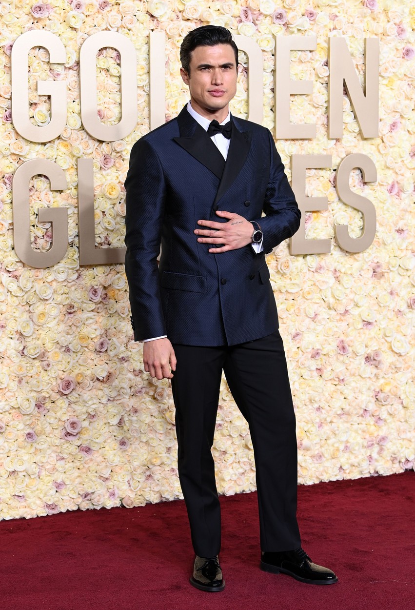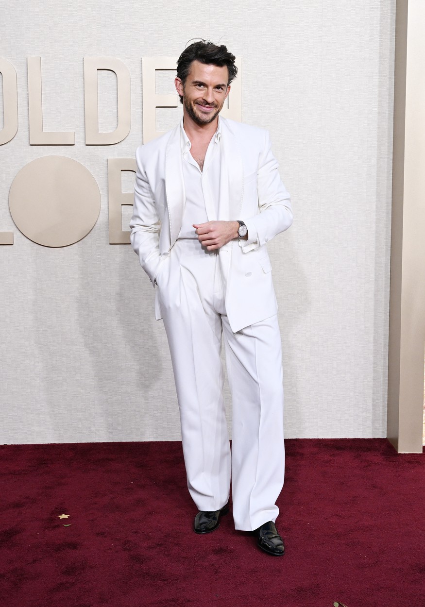 Znamko Givenchy je izbral tudi igralec Jonathan Bailey, ki je bil od glave do peta odet v belo barvo, medtem ko je Charles Melton kot eden redkih navdušil v temno modrem smoking suknjiču znamke Giorgio Armani.