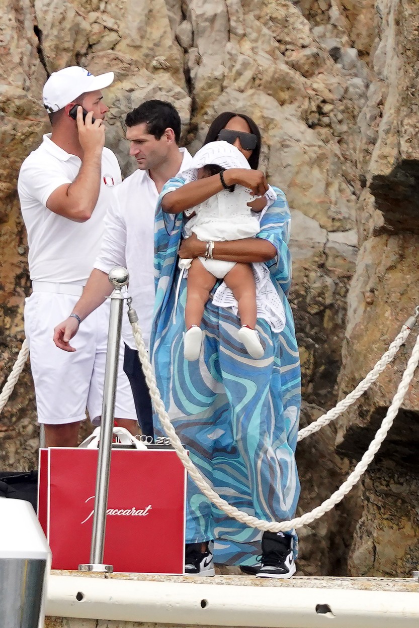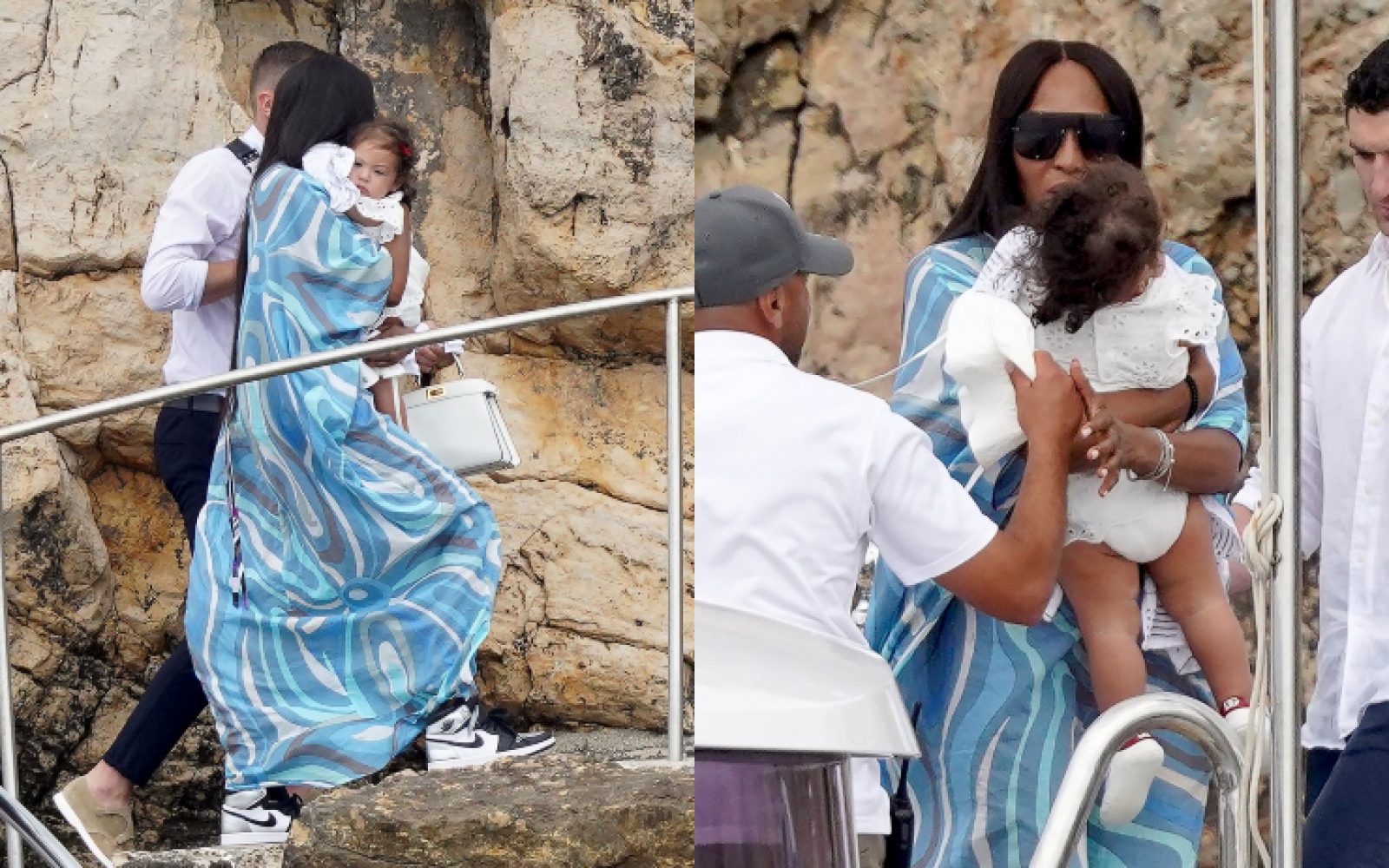 Naomi je nosila dolgo modro vzorčasto obleko in športne copate posebne izdaje Dior x Air Jordan 1 High, svojo malčico pa je oblekla v prikupen bel komplet in ujemajoče se bele copatke. Družbo jima je delal neznani moški, ki je zvezdnici ves čas ubogljivo držal torbico.