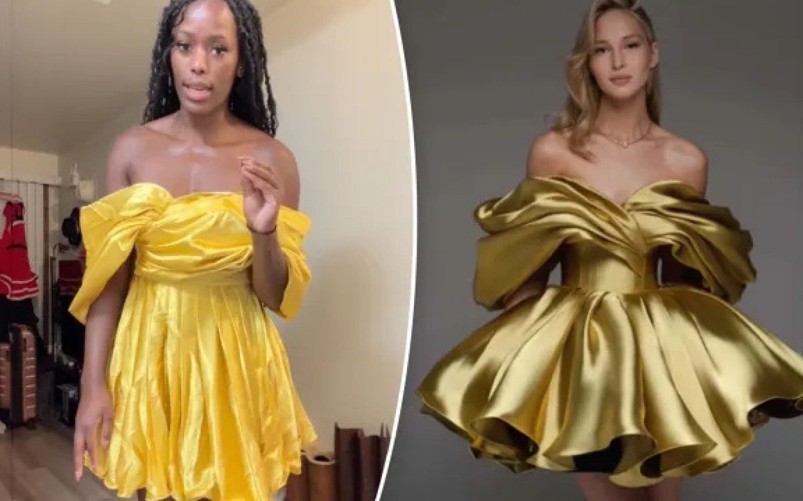 Modna blogerka, ki je pri spletnem prodajalcu Cherley kupila zlato večerno obleko z odprtimi rameni, je bila osupla, ko je prejela rumeno obleko, ki ni niti malo podobna oglaševanemu kosu.