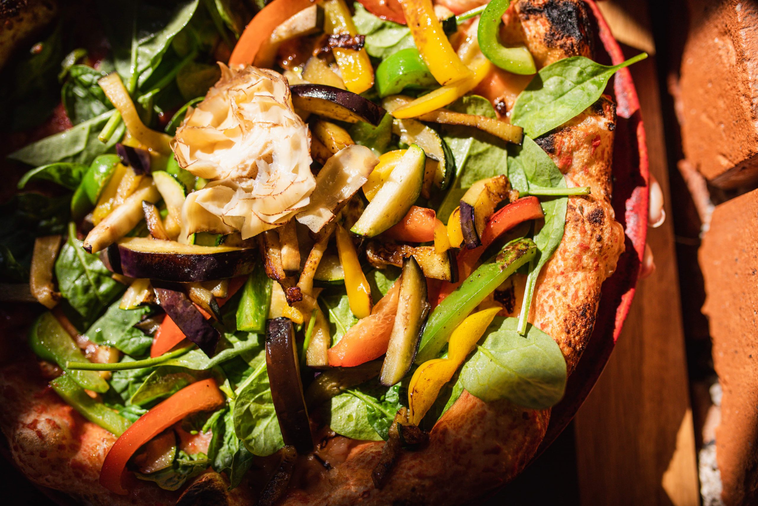 Zdaj je v središču pozornosti mojstrski pizzaiolo, ki pripravlja našo pico. Občudujemo hitrost in lahkotnost, s katero ustvarja to slastno mojstrovino. Kmalu je pica postrežena na mizi in popolnoma se prepustimo skušnjavi. Pelati, popečene bučke, jajčevci, paprika, srčki artičok in topljivi veganski sir, izdatno posipani s svežo špinačo – vse, kar potrebujete za pristen okus Italije.