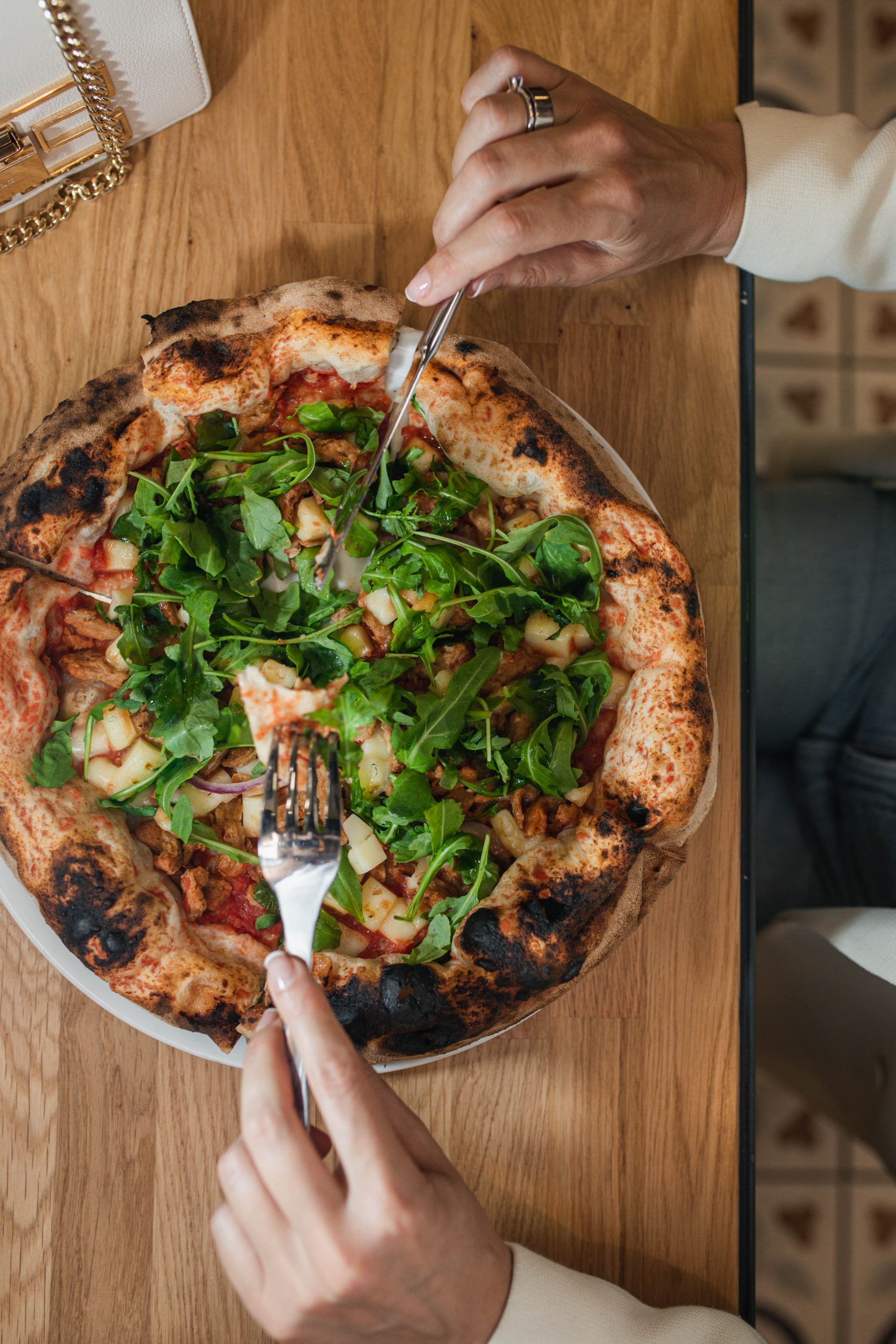 Naša pica je že postrežena in takoj opazimo, da je na mizi namesto pribora rola papirja. Ja, tu se je z rokami. Nekaterim se to morda zdi nenavadno, a kot pravijo ustanovitelji Pizza Piccola, so večinoma vsi gostje zadovoljni s svojo izkušnjo. Na naše veselje je pica lepo narezana na manjše, skoraj štirioglate kose. Z nestrpnostjo ugriznemo in mestni hrup nenadoma zamenja tiha blaženost.