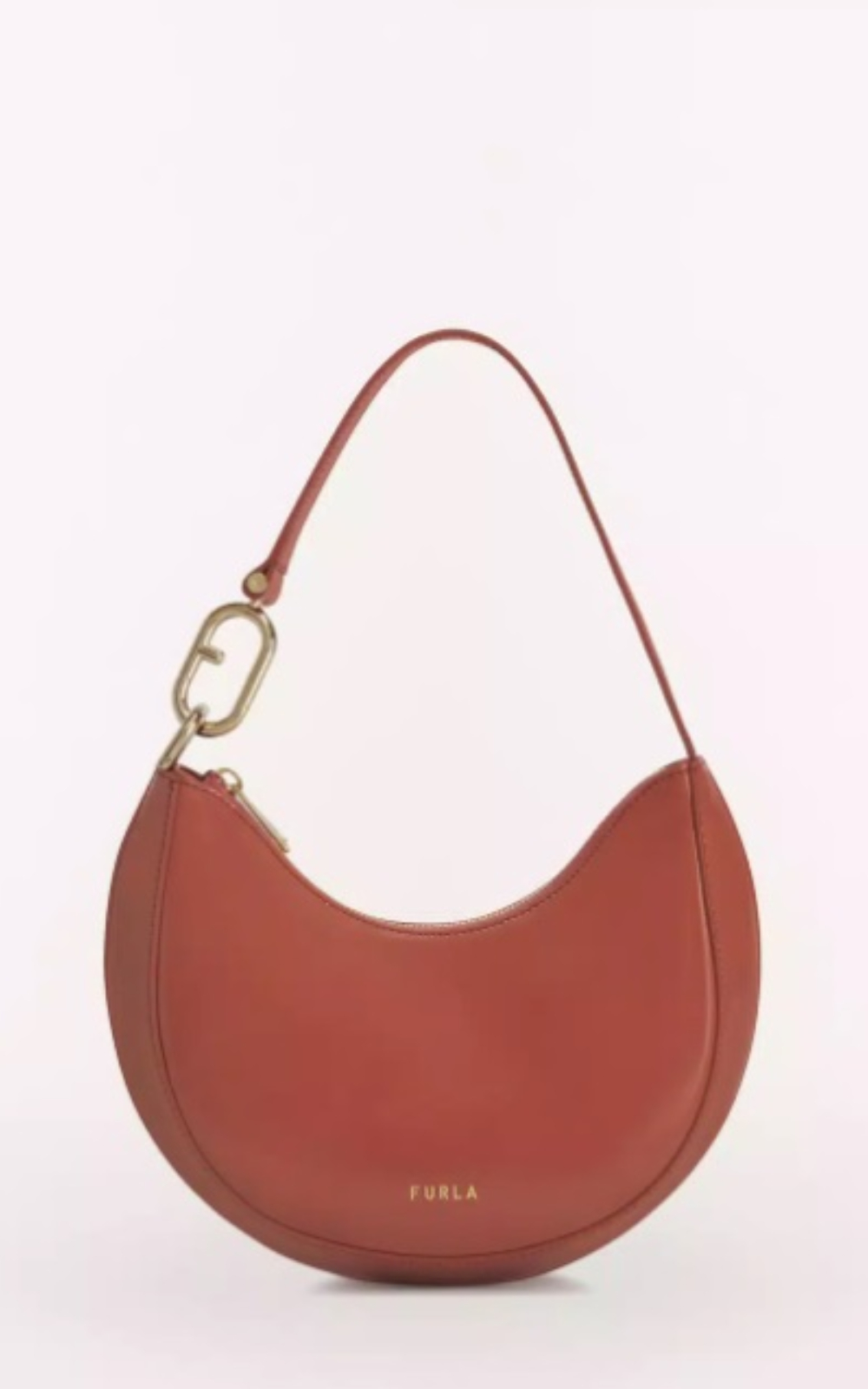 “Moon” torbica je prav takšne oblike, kakor narekuje njeno ime: preproste minimalistične oblike luninega krajca s kratkim ročajem.