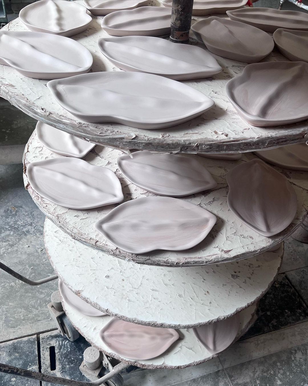 Elegantne krožnike izdeluje slovenska oblikovalka Silvija Jerman Geelen, ki je poznana po keramičnih skodelicah brez ročaja z zanimivimi napisi. Serija krožnikov je zelo majhna, na dan jih naredijo le pet, saj postopek zahteva veliko časa in skrbnosti.
