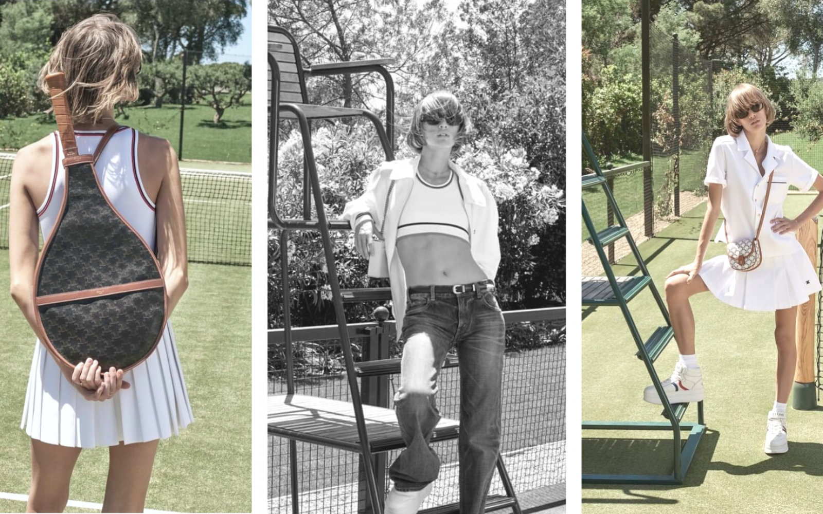 Na teniških dvobojih najbolj navdušijo asi in Celine jih ima kar nekaj v rokavu. Kolekcijo zaznamujejo teniška krila, kratki bombažni topi, superge, bombažna kapa s ščitnikom, usnjeni pasovi, sončna očala in bombažne srajce.