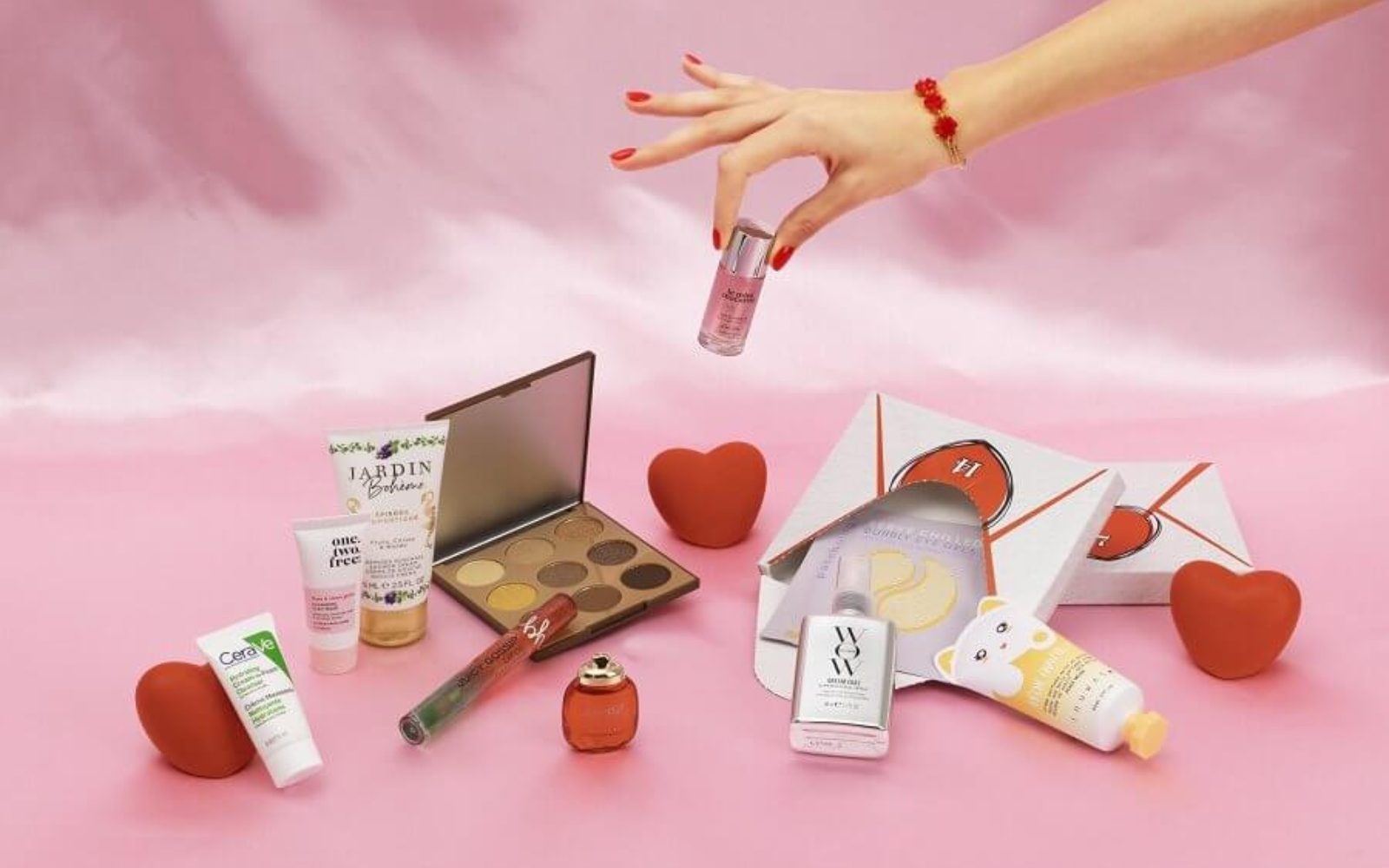 Tako lahko v valentinovi škatli, ki stane 58,55 evrov, najdete različne lepotne izdelke, vključno z maskaro, paleto senčil za oči, oljem za nego ustnic, lakom za lase in mini dišavo.