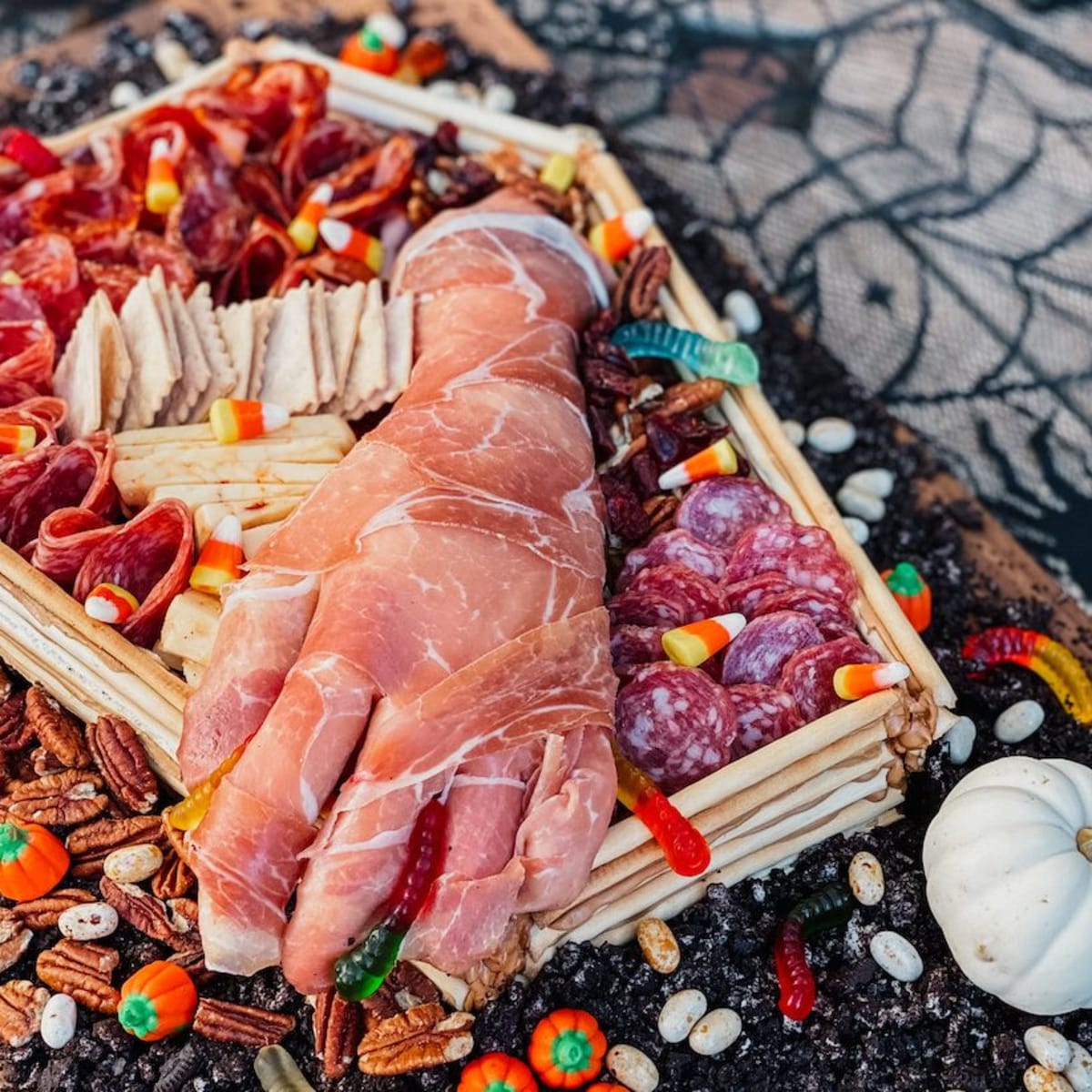 Ustvarite skrajno realistično in izredno srhljivo roko brez kože, ki jim bo pognala strah v kosti! Brez skrbi, v resnici gre za pladenj s sirom in pršutom, ki ga lahko okrasite s krekerji ali grisini.