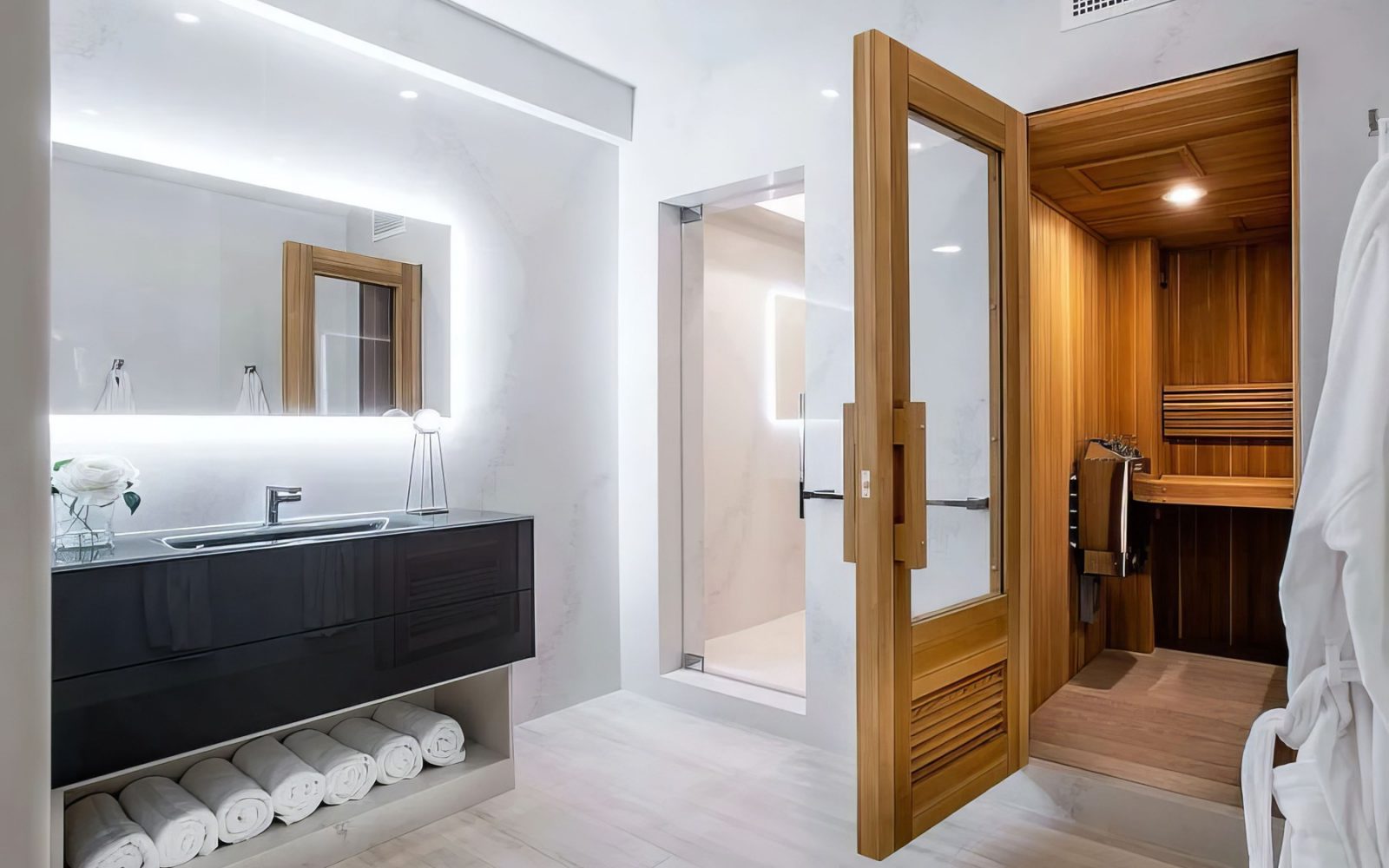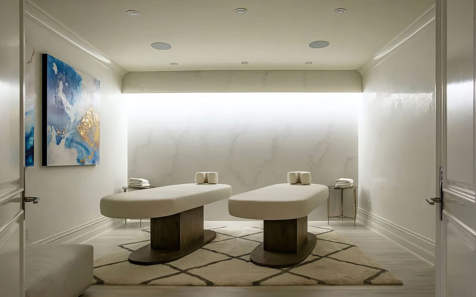Kotičkov za sproščanje na posestvu ne manjka, tako bosta lahko slavna igralca dneve preživela v 47-metrskem bazenu z masažnim bazenom in posebnim plitkim delom, v katerem je nameščenih osem počivalnikov. Dvorec je bil zgrajen leta 2000, renoviran pa leta 2017.