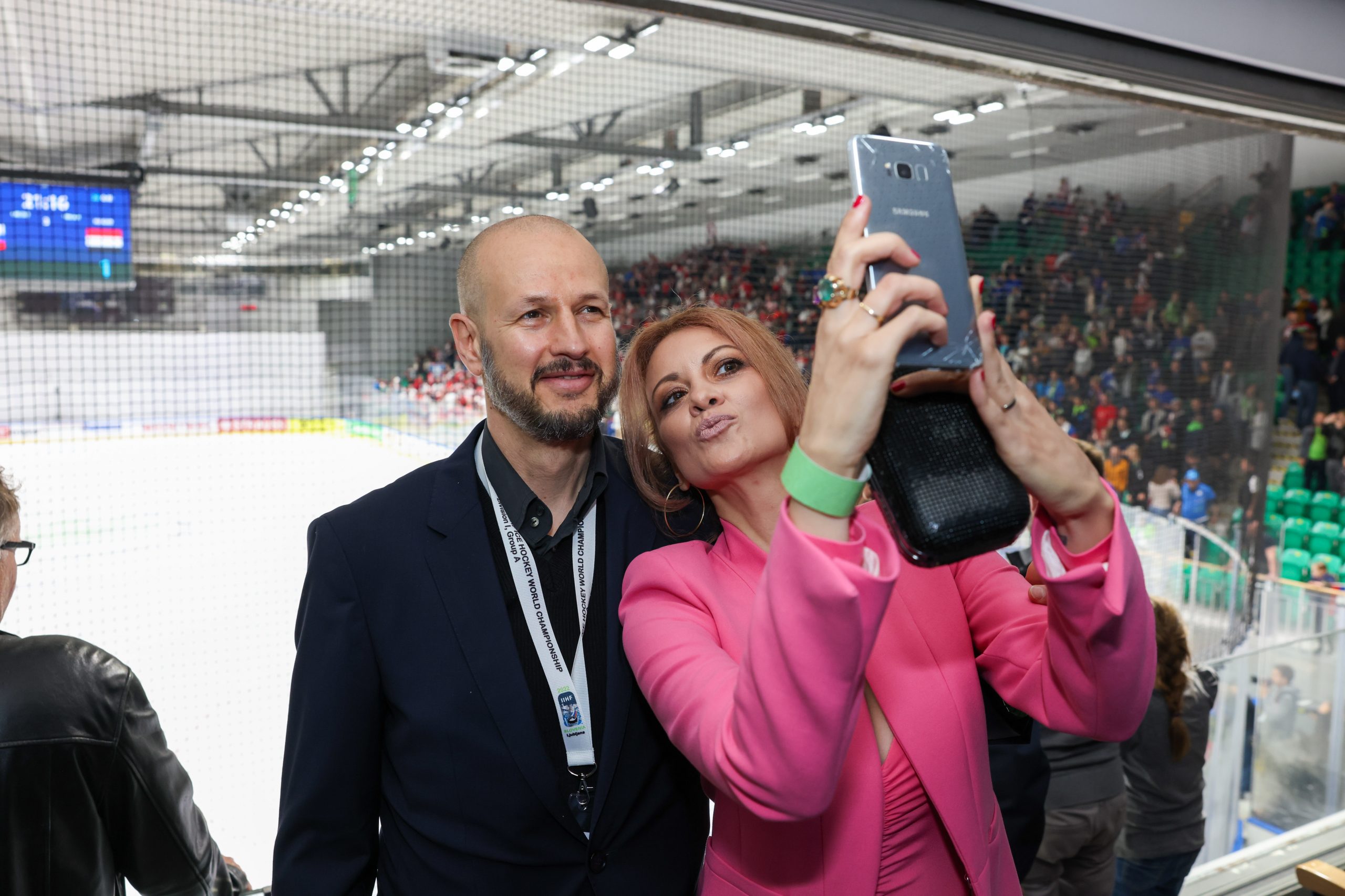 Tokrat je prišla kot spremljevalka svojega partnerja Dejana Kontreca, generalnega sekretarja Hokejske zveze Slovenije in presenetila z nekoliko drugačno barvo las.