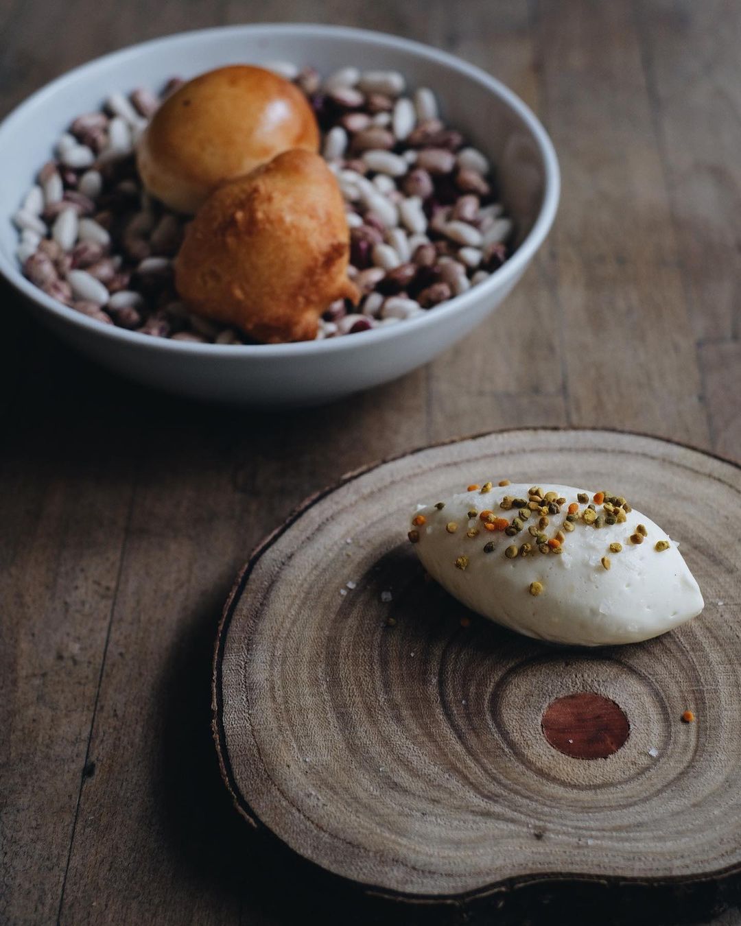 Tako kot v vsaki malce bolj prefinjeni restavraciji smo večerjo pričeli z majhnim, a izjemno okusnim pozdravom iz kuhinje. Ta je bil sestavljen iz fermentiranega masla, domače brioche bombetke in miške. Ja, prav ste prebrali, miške, tiste, ki jih dobite tudi na Šmarni gori. In kljub nenavadnosti jedi je bila kombinacija odlična, moramo priznati, da je sveža kvašena miška veliko bolj pristajala maslu, kot običajen brioche.