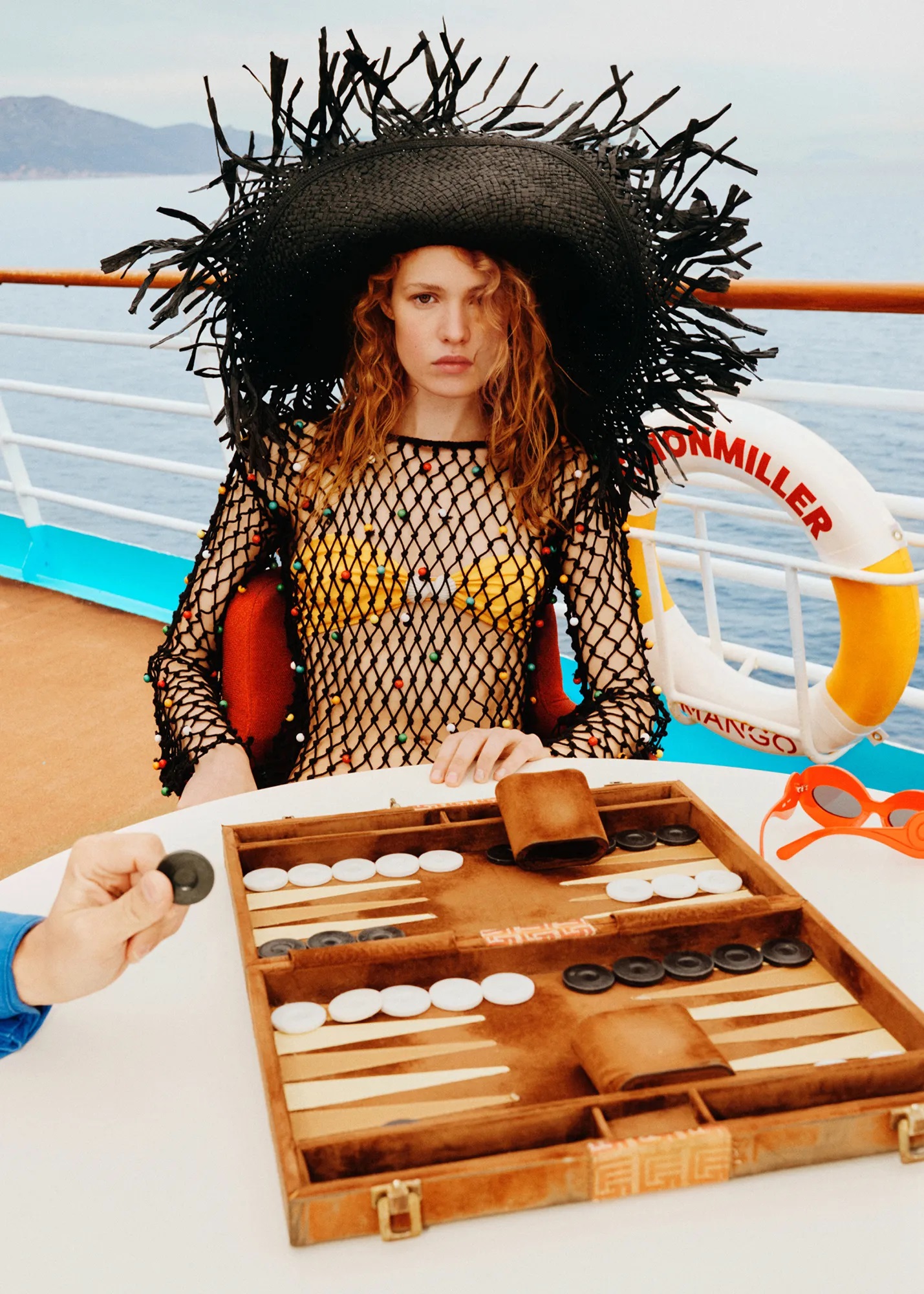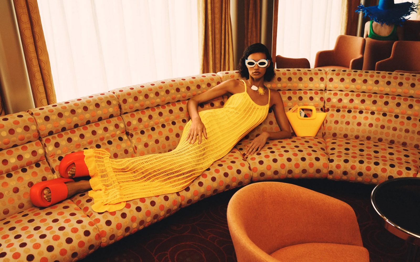 “Sončna očala so na splošno eden mojih najljubših kosov,” pravi Hansford, ki ji je ljuba tudi rumena kvačkana obleka. “Odlično izpade v kombinaciji z modrim slamnikom in nakitom.” Prepričana je, da bodo velik hit postali tudi sandali s platformo. “Tako so udobni in zabavni, popolni za poletje!”