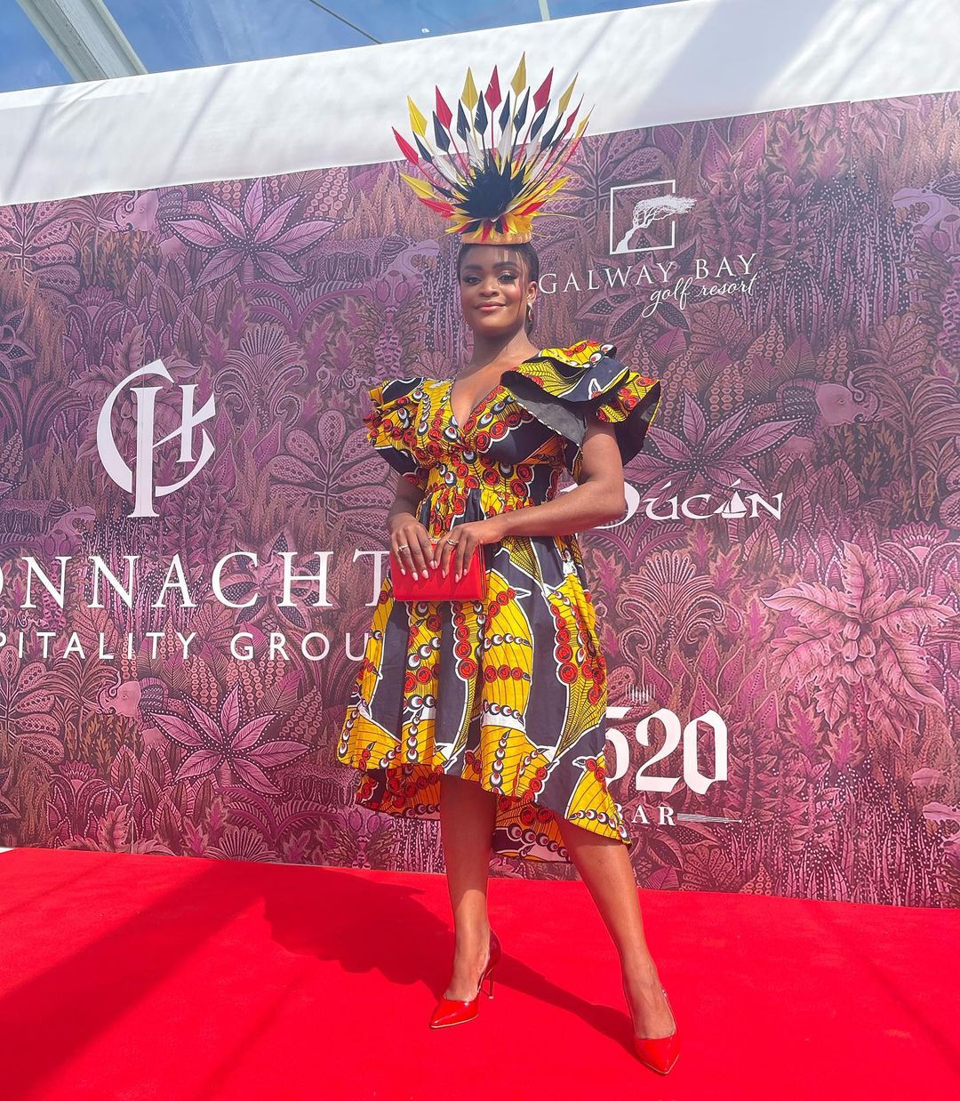Uba, ki je lani postala prva temnopolta nosilka naslova Miss Irske, je na velikem četrtkovem dogodku nosila obleko znamke Grass-Fields, ki jo vodita sestri iz Kameruna, njune obleke pa so narejene v Kamerunu, Nigeriji ter Veliki Britaniji.