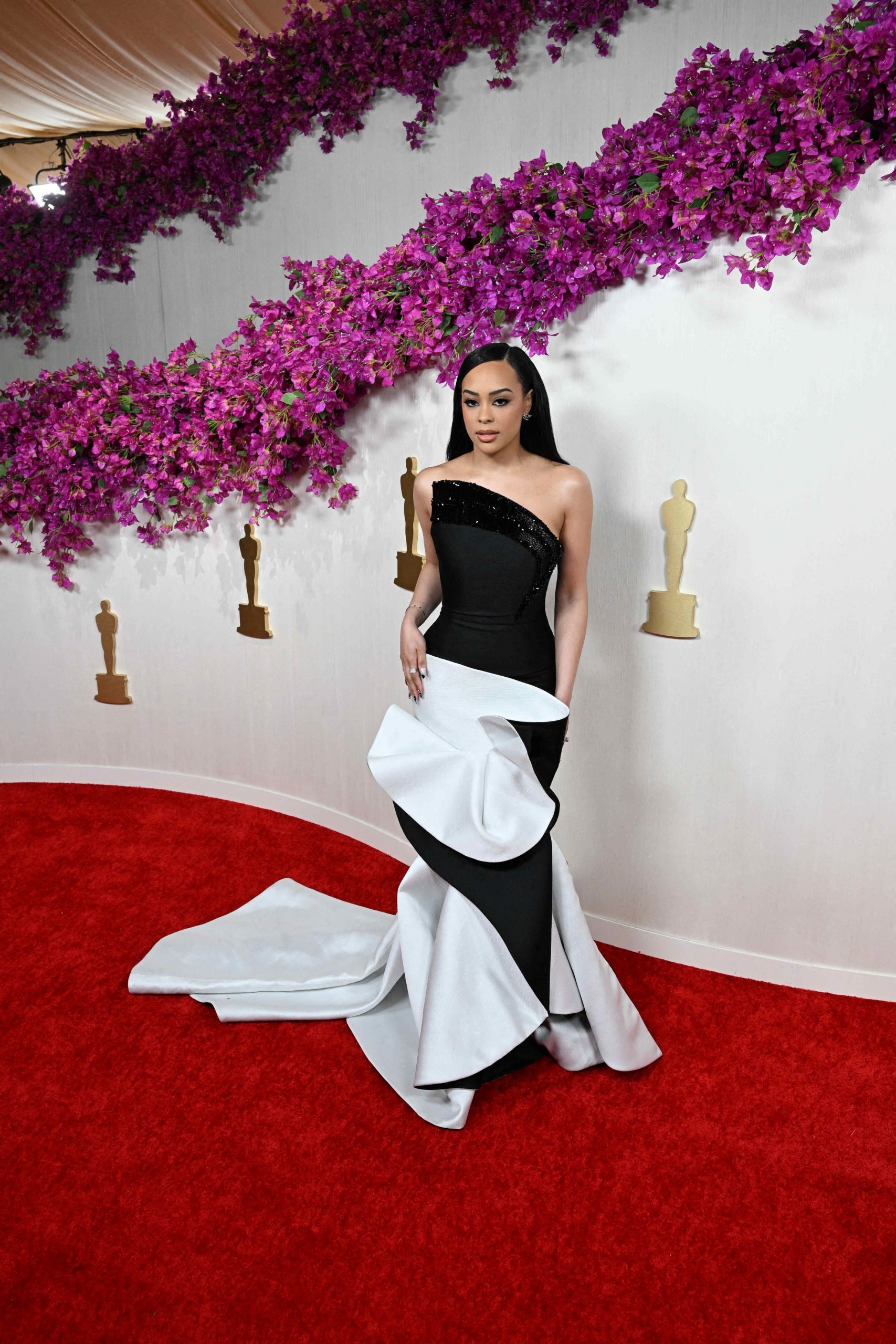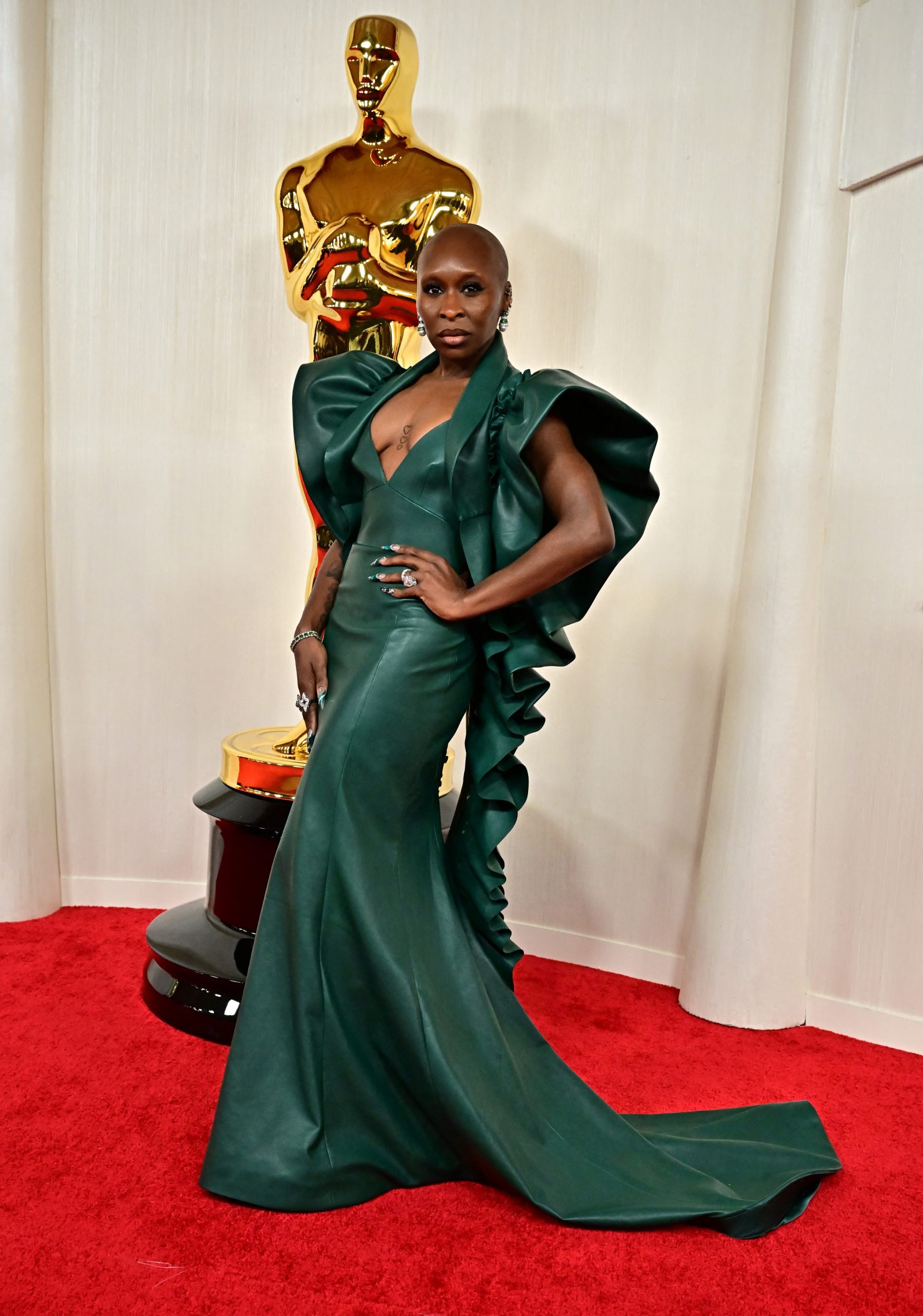 Erika Alexander je nedvomno izbrala eno najslabših oblek, v oči bode barvna kombinacija, ogrlica, ki je videti kot da bi si jo sposodila od hčere ter rokavice s prstanom. Za obleko Ariane Grande ne vemo kaj naj si mislimo, po eni strani se nizka igralka v njej popolnoma izgubi in njeno koščeno postavo optično še zoža, a ima vseeno pridih starega Hollywooda.