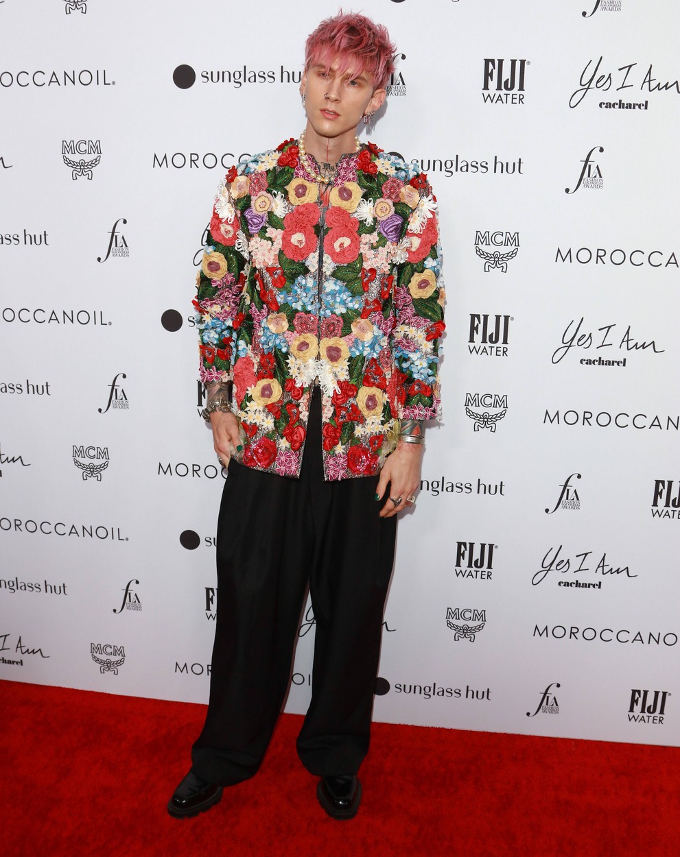Družbo ji je delal njen zaročenec Machine Gun Kelly, ki je znan po svojih odštekanih opravah. Tokrat je presenetil z rožnatimi lasmi, ki so se skladali z njegovo majico, na kateri so bile izvezene barvite rože.