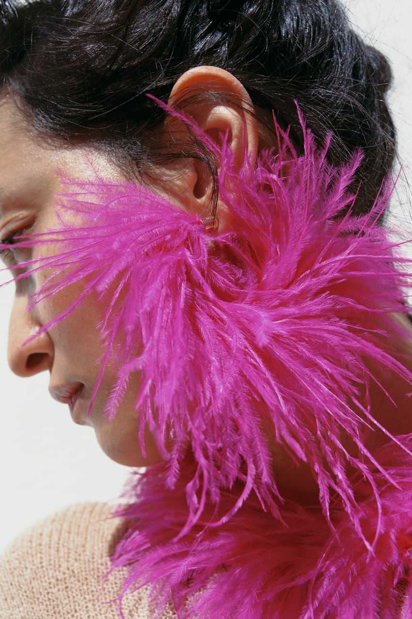 No, zdaj boste lahko k pernatim opravam dodali še nakit iz perja. Tako ga vidijo pri Zari: