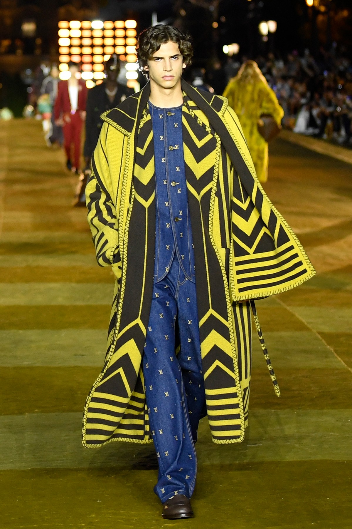Modno revijo je s klasično glasbo spremljal orkester, ki pa je v drugem delu prešel v rapersko točko, ki je naznanila tudi živahnejši in barvitejši del kolekcije. Damier vzorec v številnih velikostih je zaznamoval videze od nog do glave v vseh barvnih različicah, med katerimi so v oči najbolj bodle rumena, rdeča in indigo modra barva.