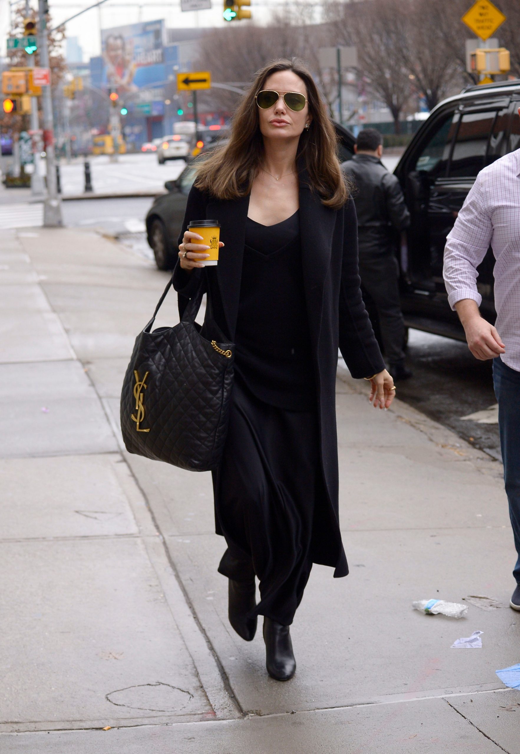 Mango, 39,99 eurNikoli ne podcenjujte moči popolnoma črnega videza! To jasno pokaže Angelina Jolie, ki ga je dodala s pravimi dodatki – velikimi sončnimi očali, dizajnersko torbo in nakitom. Prefinjena in neustrašna mamica na pohodu!