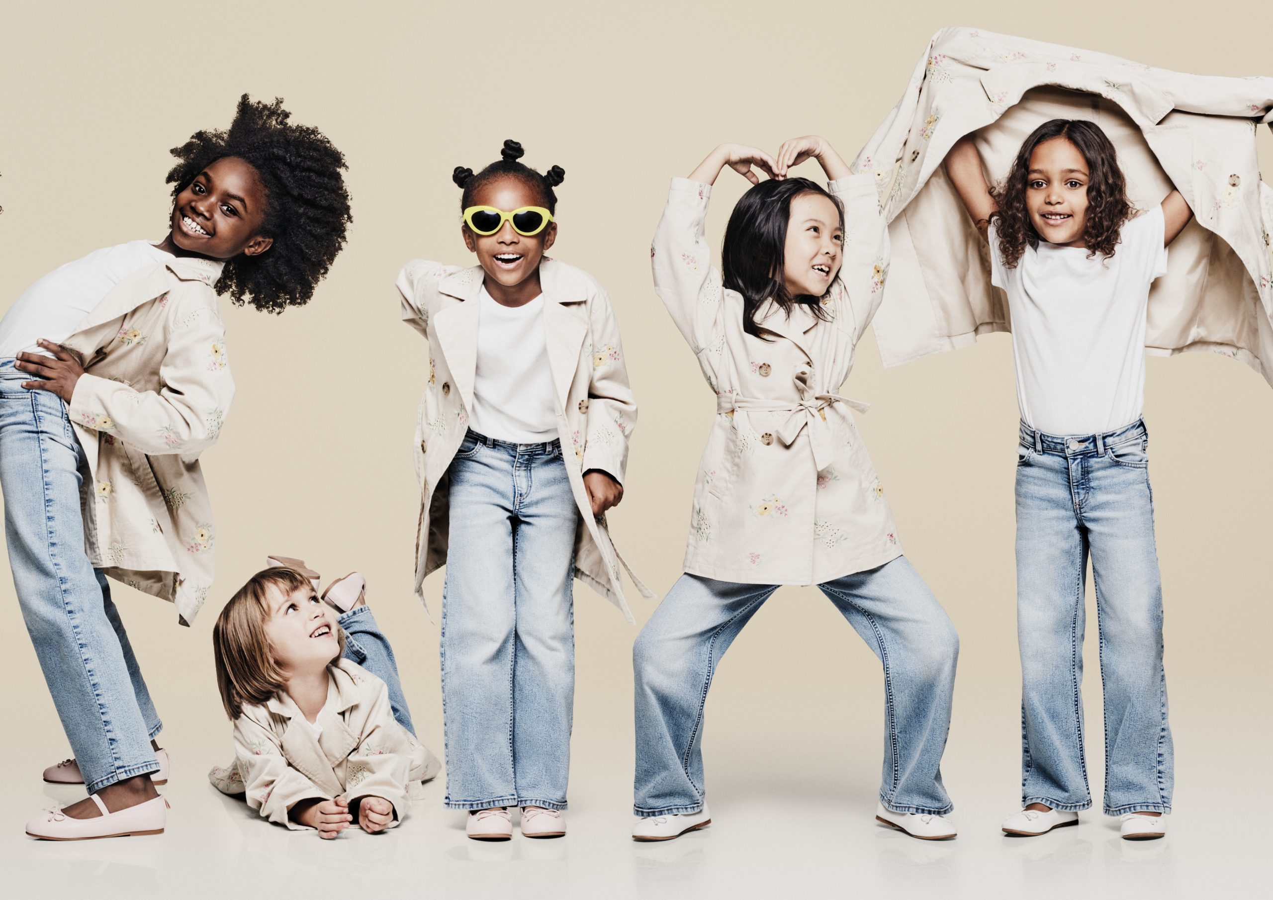 Pri otroških oblačilih se prvi znaki pomladi kažejo v cvetličnih potiskih, voluminoznih silhuetah, mehkih kombinezonih in kosih, ki jih navdihujejo poslovna oblačila.