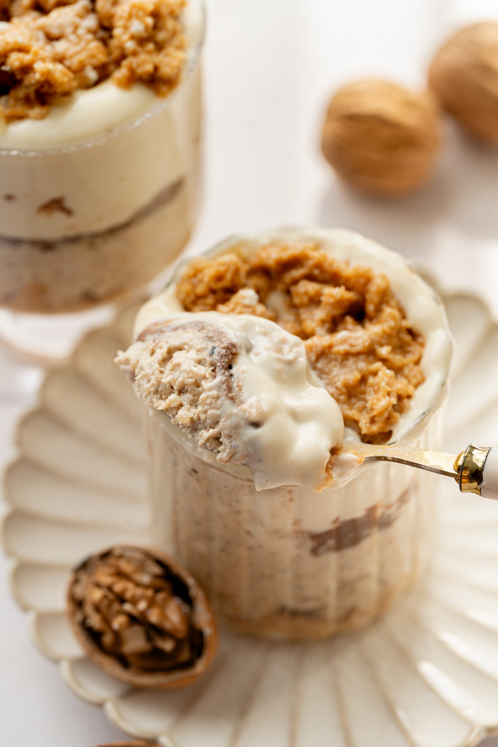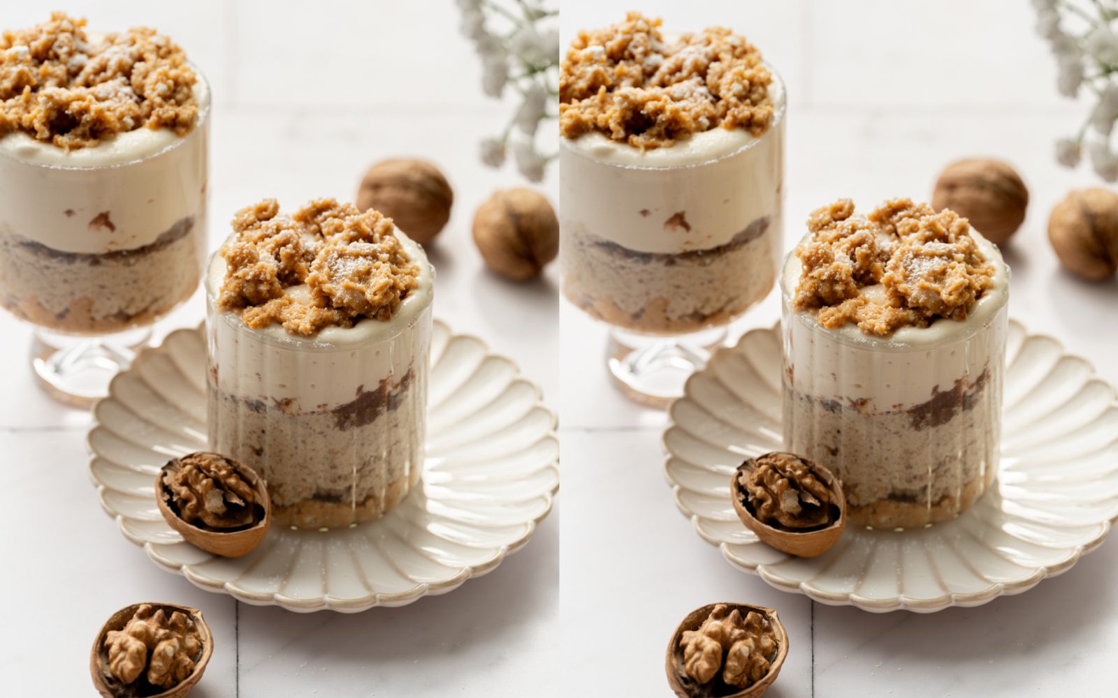 Idejo za slastno praznično sladico v kozarčku, ki je kremasta in sočna, je na svojem Instagram profilu s svojimi sledilci delila Nina Zorčič, ustvarjalka receptov in digitalnih vsebin. Ob receptu je zapisala, da je sladica “kot bi jedli samo nadev; najljubši del potic”.
