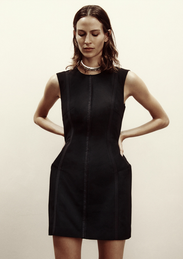 Podrobnosti spodnjega perila posodabljajo krojenje, z mrežasto obrobljenimi črnimi hlačami, ki se ujemajo s skrajšanim zgornjim delom korzeta in spuščenim oversized suknjičem. Potem je tukaj brezčasno privlačna kombinacija oprijete srebrne slip obleke in črnega plašča, ki bo v kombinaciji z geometrijski nakitom in minimalističnimi sandali s paščki postala zvezda večera.