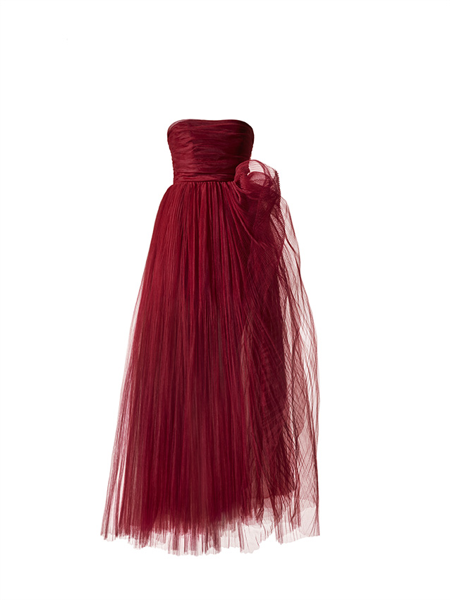 Ključni kosi, ki vas bodo v hipu očarali, vključujejo voluminozno obleko iz tila v dramatični rdeči barvi, rožnato večerno obleko s čipko in bleščečo mrežasto mini obleko z izrezom.