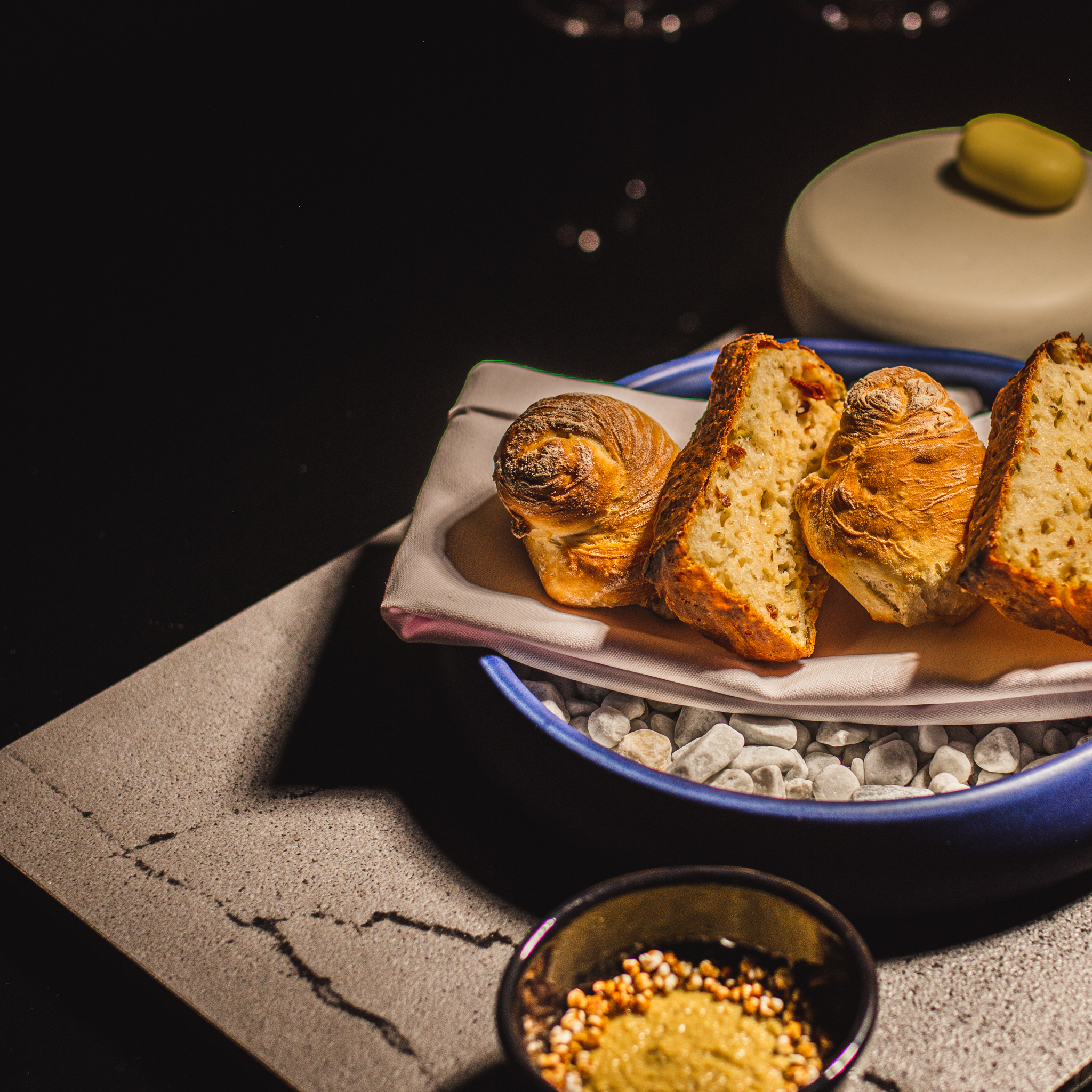 Čudovito kulinarično izkušnjo smo pričeli s serijo petih pozdravov iz kuhinje (amuse–bouche), ki so zajemali značilne slovensko-istrske jedi. V hrustljavi skorjici skrita domača pašteta iz bakalarja je bila odličen uvod, čeprav bi si ljubitelji paštete iz bele ribe želeli nekoliko intenzivnejši okus. V nadaljevanju uvoda s pozdravi iz kuhinje smo uživali ob kombinaciji okusov fritaje, pri kateri nas je navdušila popolna uravnoteženost kreme rumenjaka, ocvirkov, pene tartufa, ribanega tartufa in kruhove čipke v obliki lista.