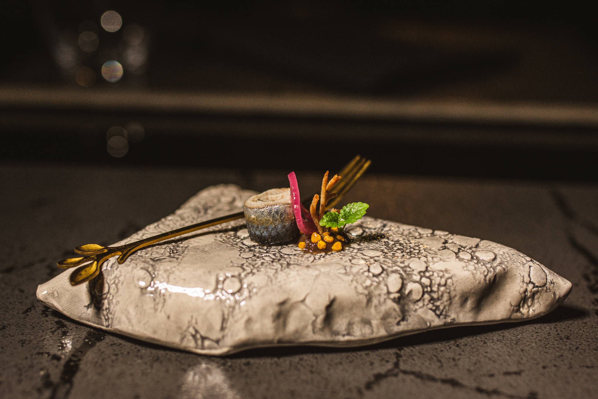 Okušali smo vrhunski običajni 8-hodni meni (v redni ponudbi je še veganski meni), ki ga je kreiral komaj 23-letni chef Kristian Zule in bazira na morski hrani z eno mesno jedjo.