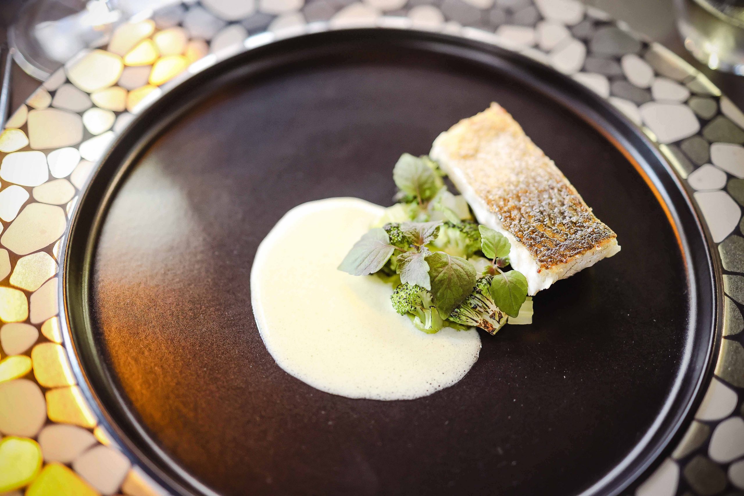 Edina jed, ki nas je pustila nekoliko bolj ravnodušne, pa je bil brancin na žaru z ožganim brokolijem v kavnem olju, kompresirano steblo zelene, drobnjakova majoneza in omaka limonine trave. Še vedno je bili okus dober, a ob vsej kompleksnosti preostalih jedi, se je ta zdela morda nekoliko medla.
