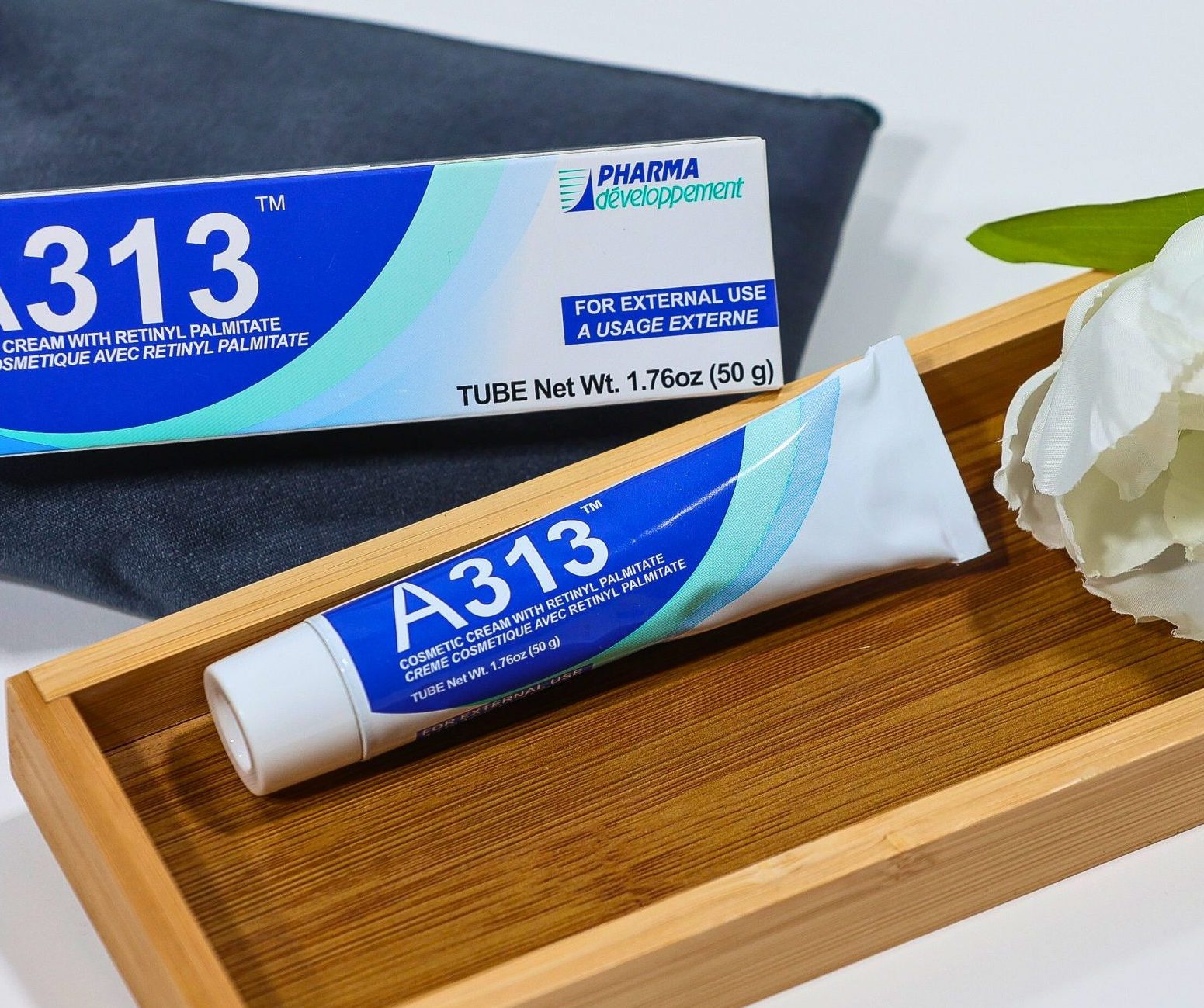 A313 krema z retinil palmitatom je negovalna krema, ki deluje na vse znake staranja. Francoski kultni lepotni izdelek, ki ga do sedaj pri nas nismo imeli in ga je v nekaterh državah nemogoče kupiti, spodbuja obnovo celic, tvorbo kolagena in elastina, zmanjšuje drobne linije in gube.