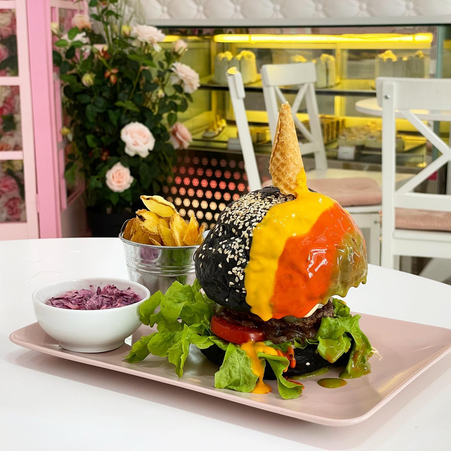 Unicorn Bistro je na Madžarskem poznan po svojih pisanih in odštekanih jedeh ter rožnati estetiki. Po slikah sodeč je lokal popolnoma opremljen v roza barvi, v notranjosti pa se celo nahaja rožnata telefonska govorilnica.